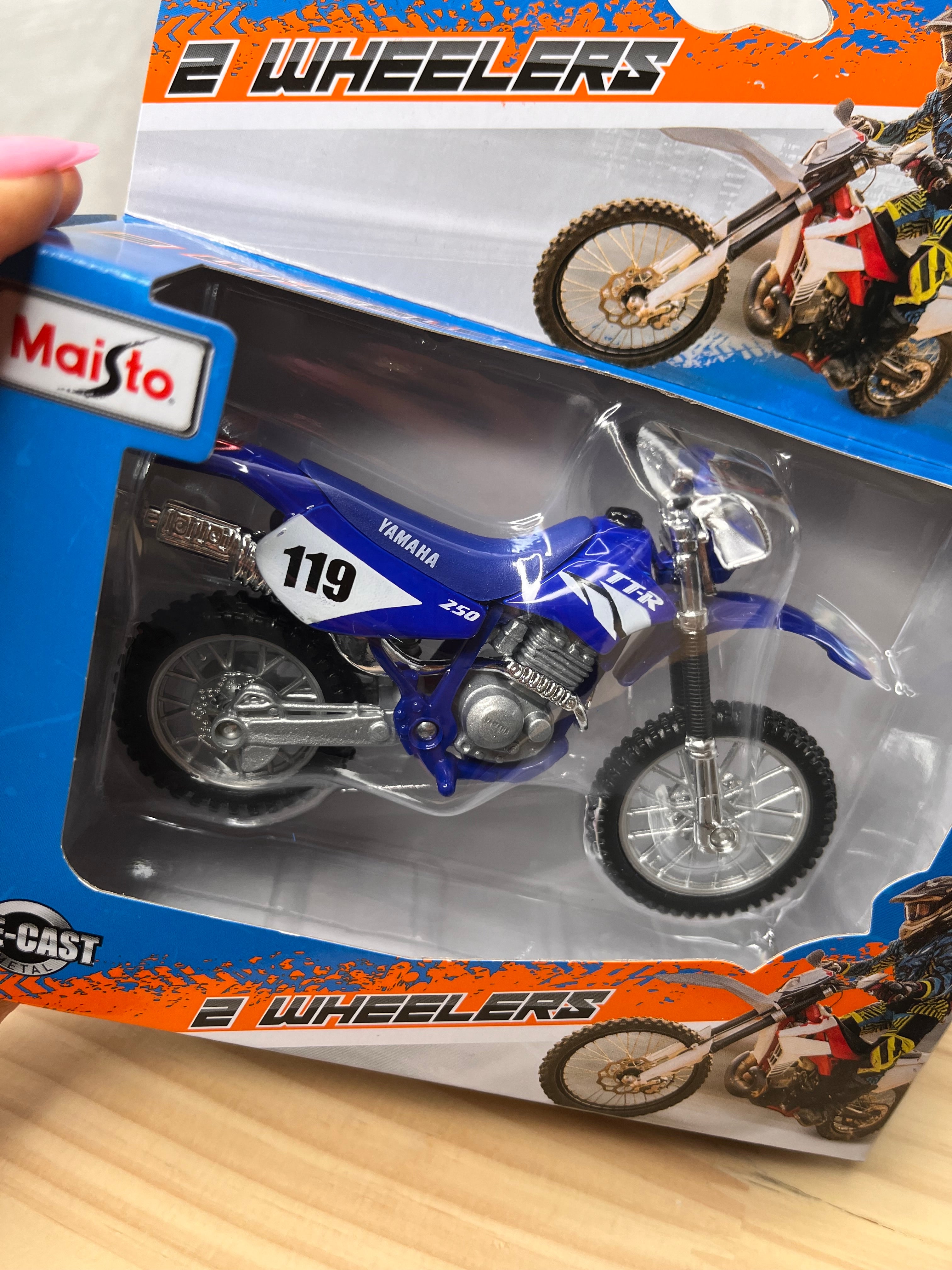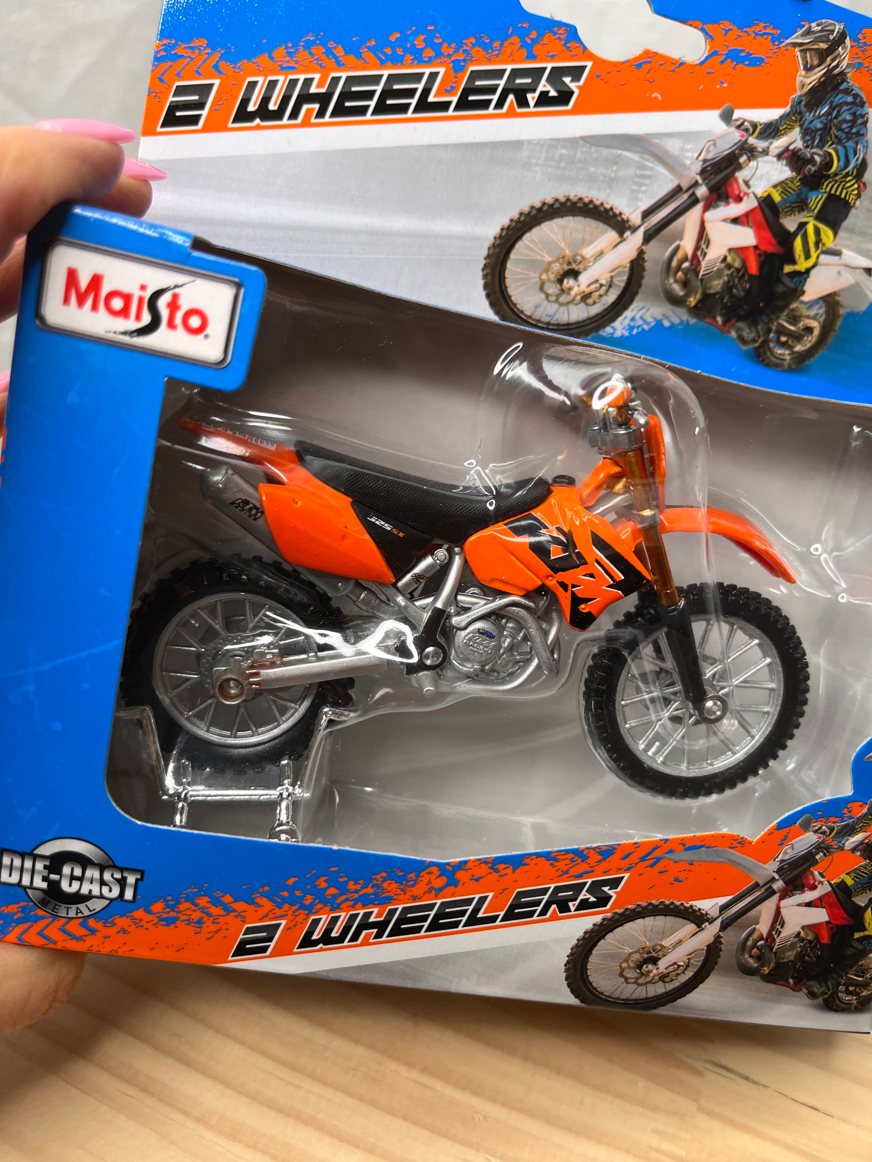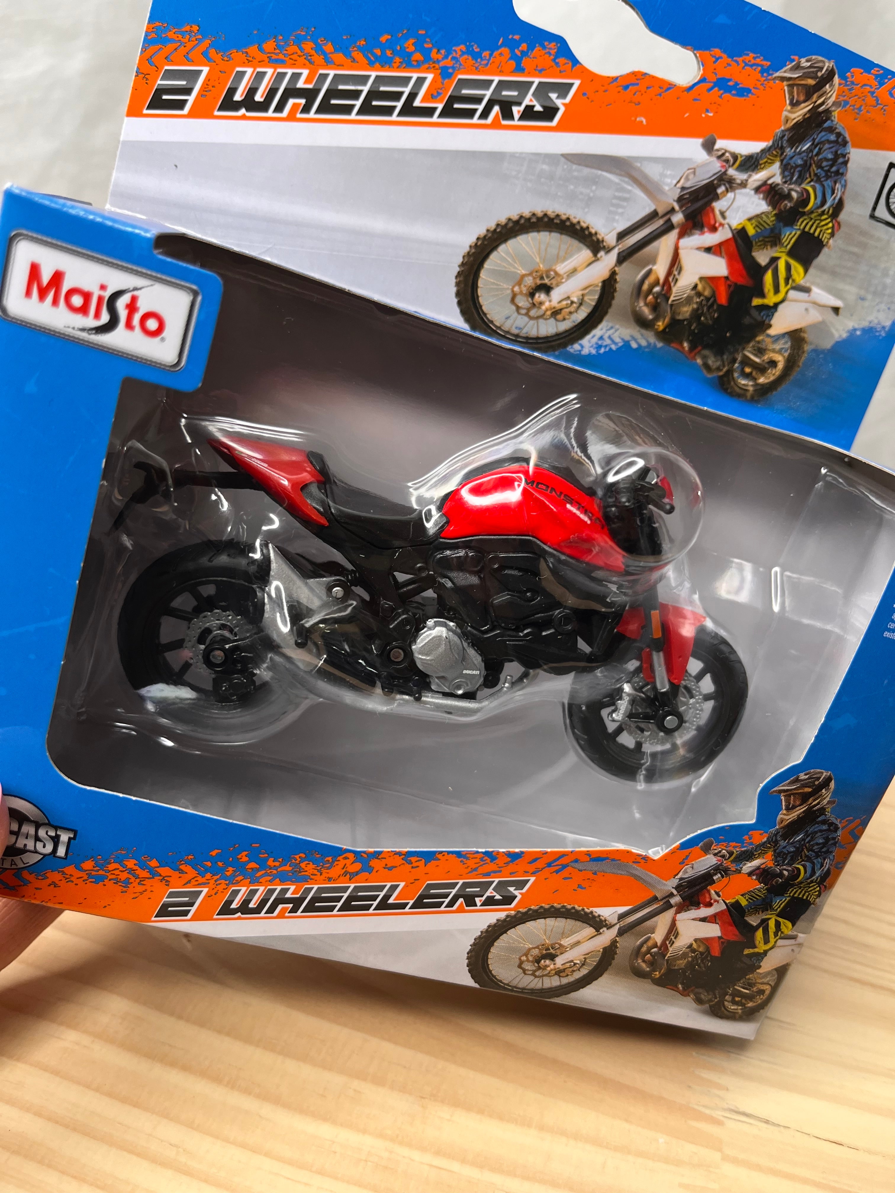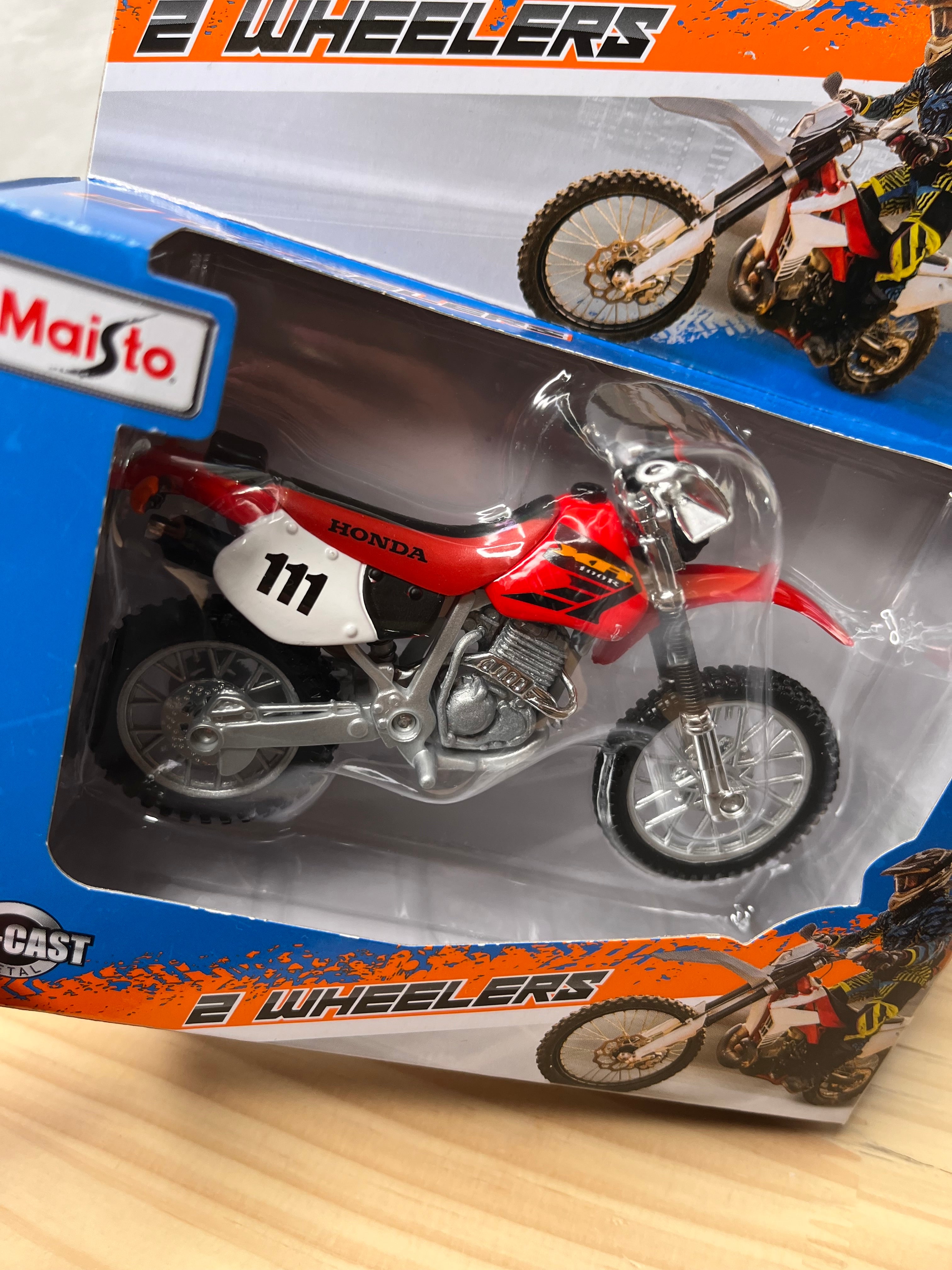 Die-cast metal 1:18 scale motorbikes with plastic parts. With working steering, working rear suspension, working stand as well as free motorcycle wheels, made from top quality rubber tires and all in excellent detail.Altogether a perfect model measuring about 12 cm long and 7 cm high.