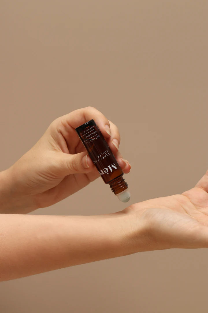 To use a clary sage roller, simply roll the oil onto your skin, focusing on your lower back and abdomen. You can also apply the oil to the inside of your wrists or on a cloth that you can inhale during contractions.