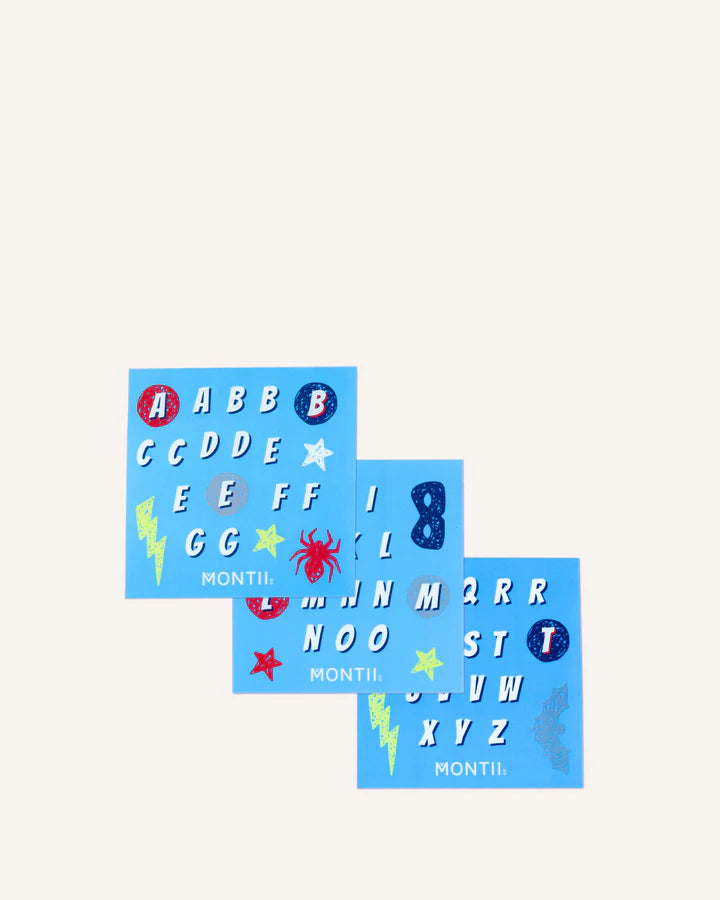 *Comes with a FREE set of Superhero stickers. Dishwasher safe, waterproof, and made to match your favourite Montii prints, each pack contains 3 sheets of stickers for you to personalise your Bento Boxes, Drink Bottles and more!*