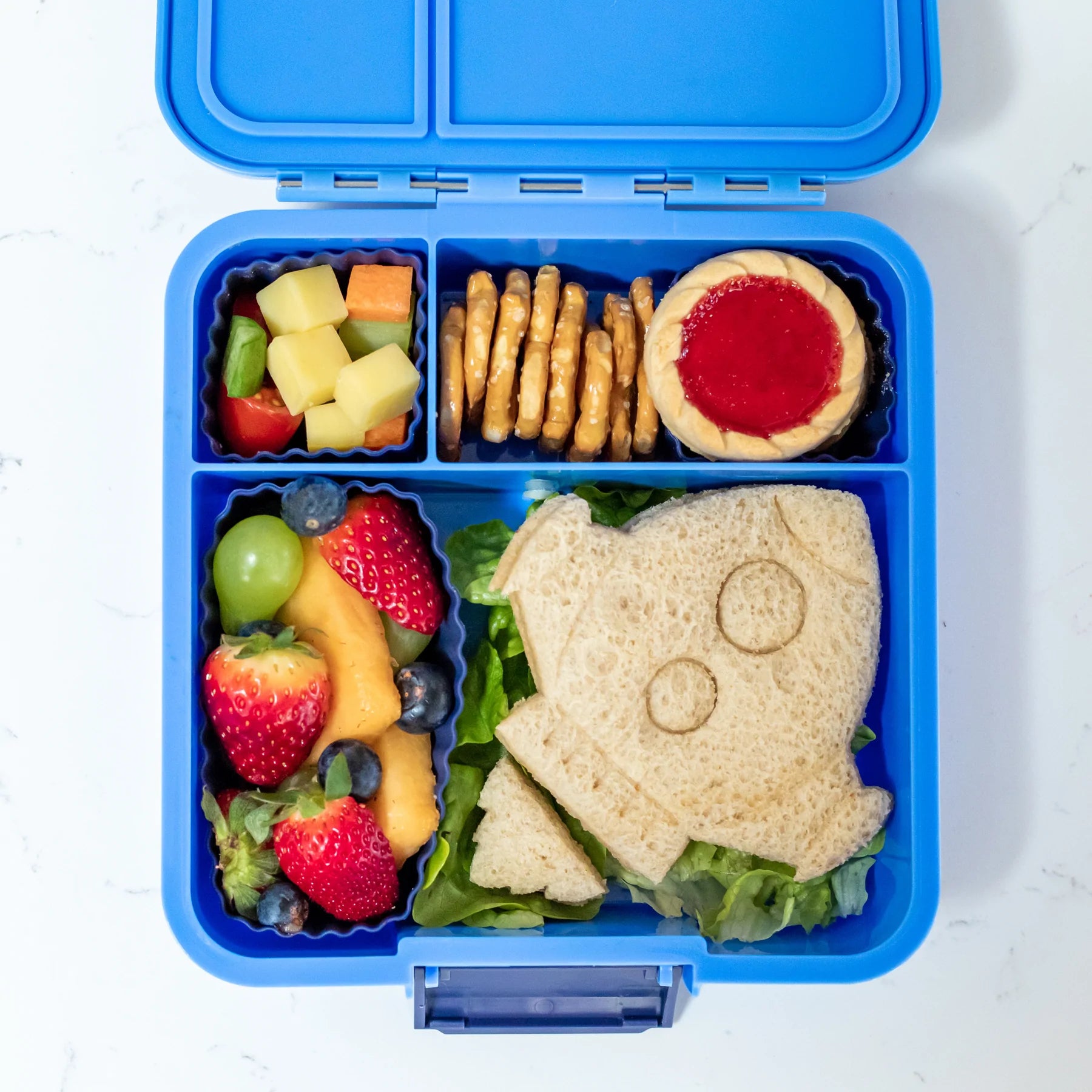 The individually sealed, leakproof* compartments in the Bento Three allow you to pack sandwiches, fruit, veggies, crackers and yoghurt side by side without the risk of spills. Our Bento Boxes are airtight, so you can pack lunches the night before, or even a couple of days in advance!