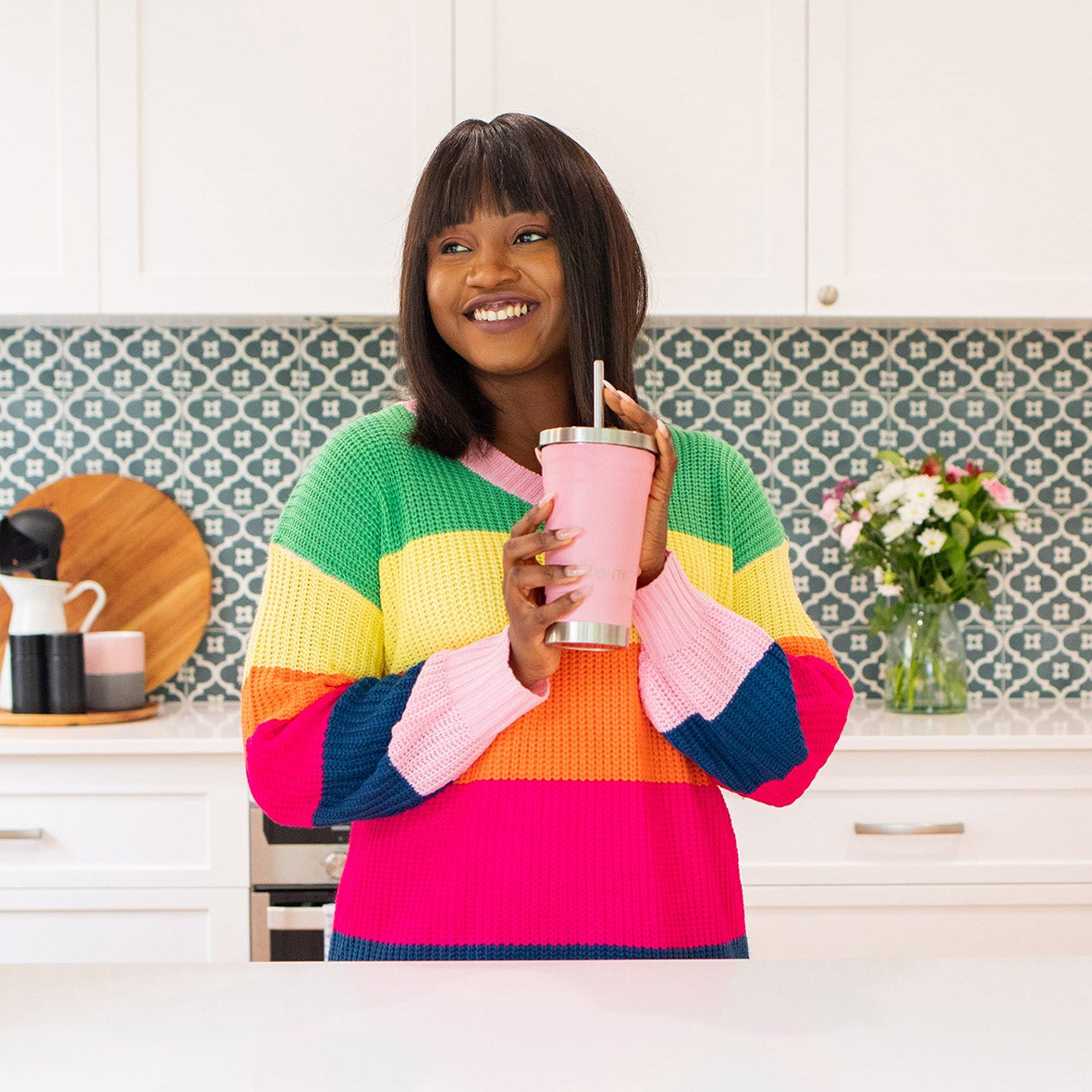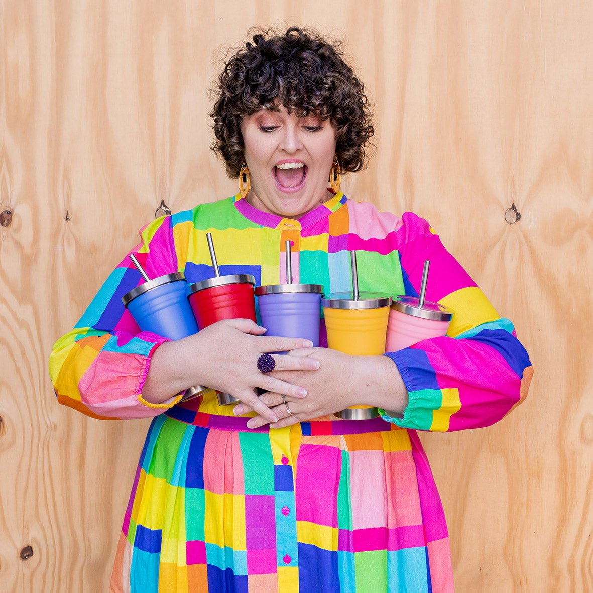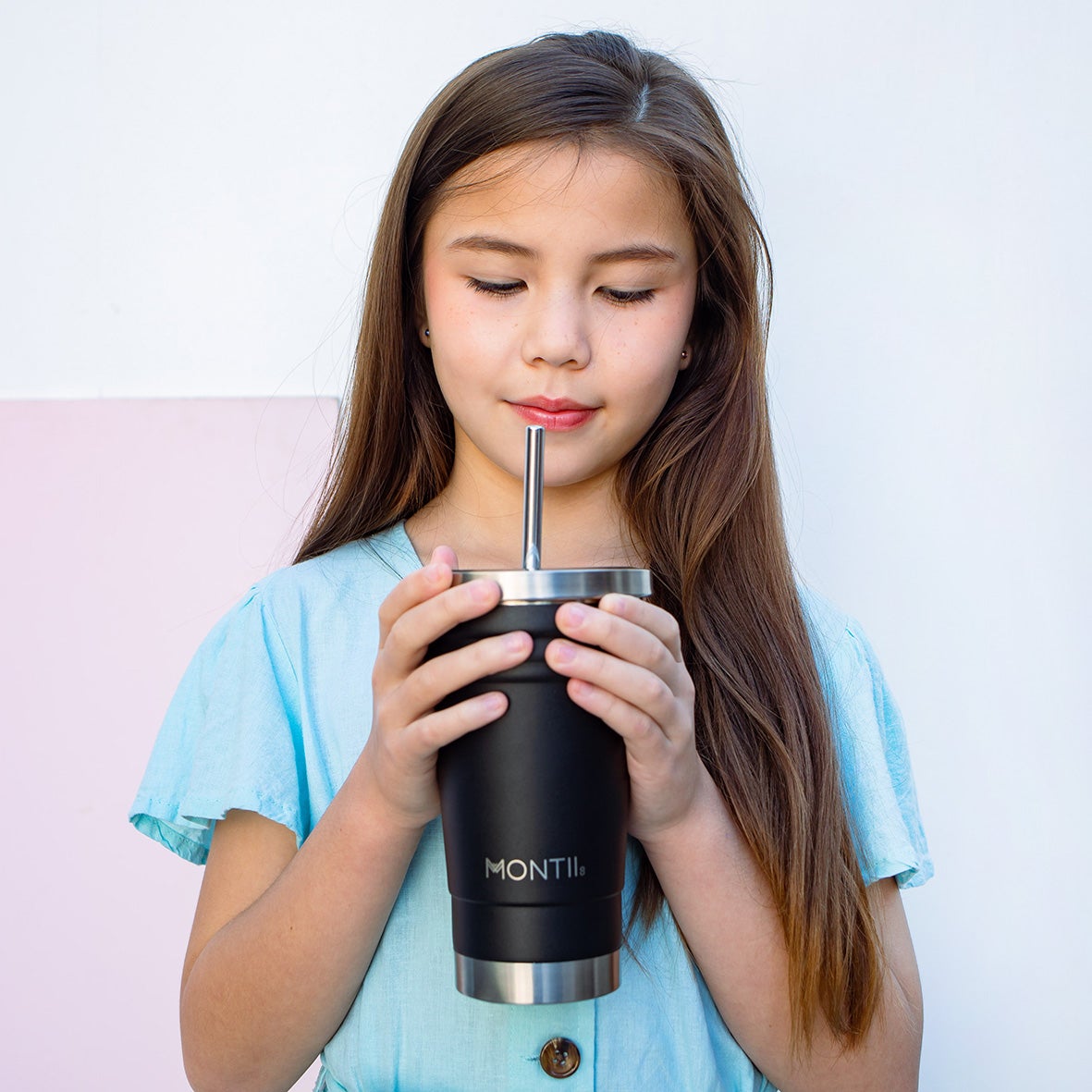 Meet Mrs Smoothie, she’s irresistibly sweet on the eye – but don’t confuse her cuteness for softness, she’s as hard as they come. When you step out holding her insulated steel body there’s no worry of smashing or spilling a drop, she’ll keep your liquid cool all day. Fill her up with whatever you fancy – smoothies, juice, infused water, milkshakes and more! She also makes a mean iced coffee coz kids don’t get to have all the fun.