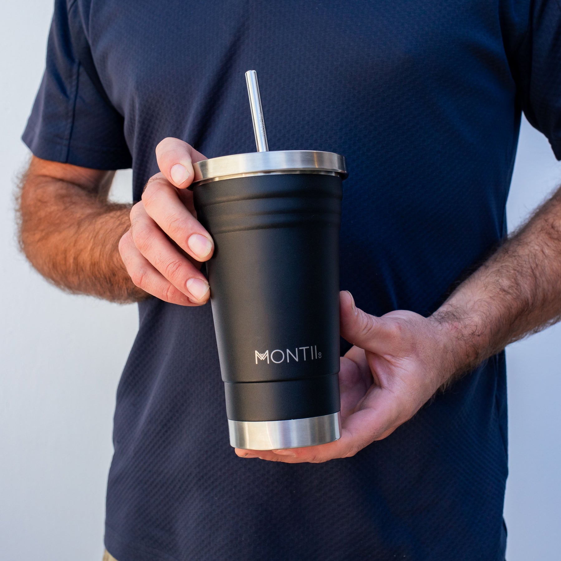 -Screw on Stainless Steel lid + Thick Steel Straw