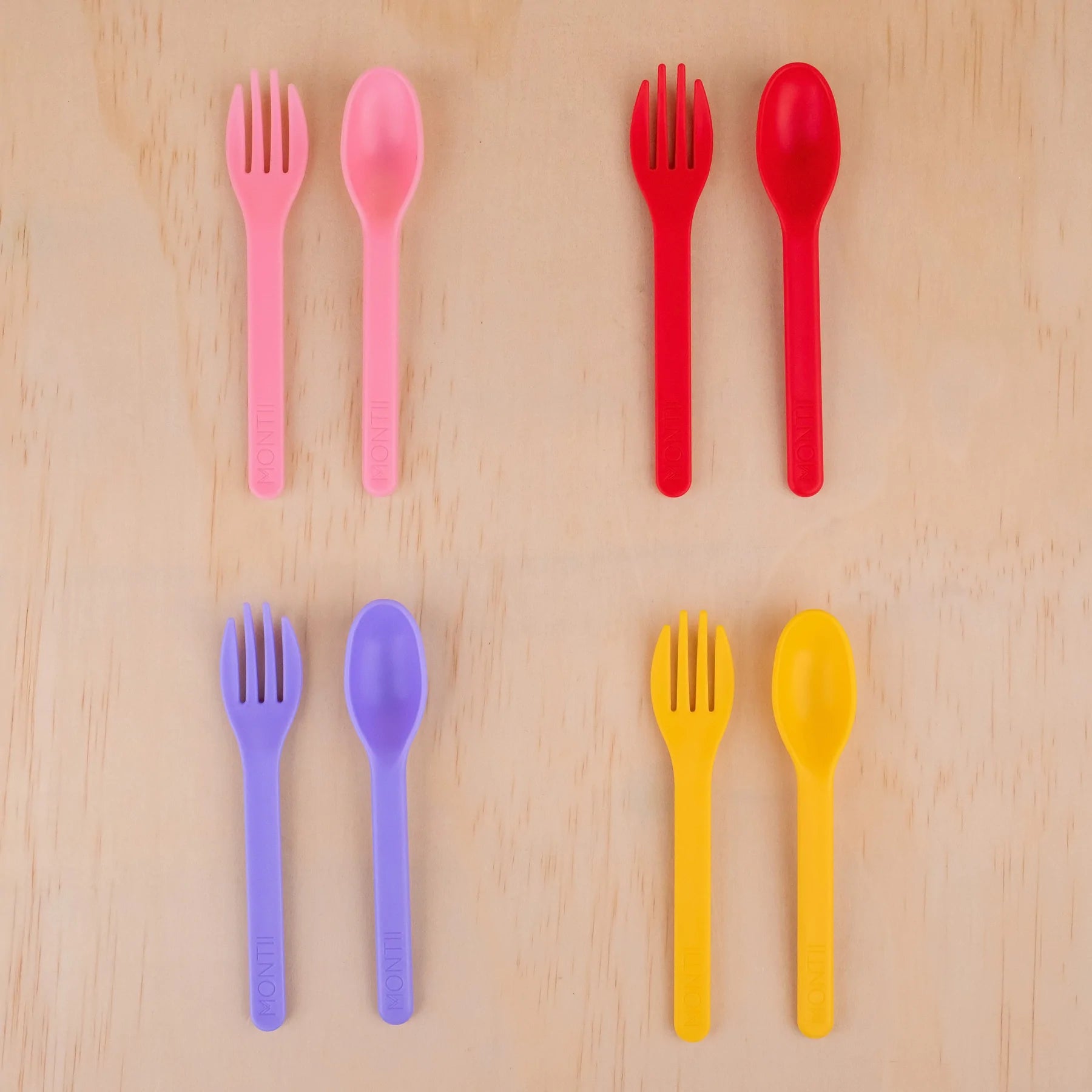 4 pairs of Forks and Spoons in complimentary shades means you can mix and match for endless fun!