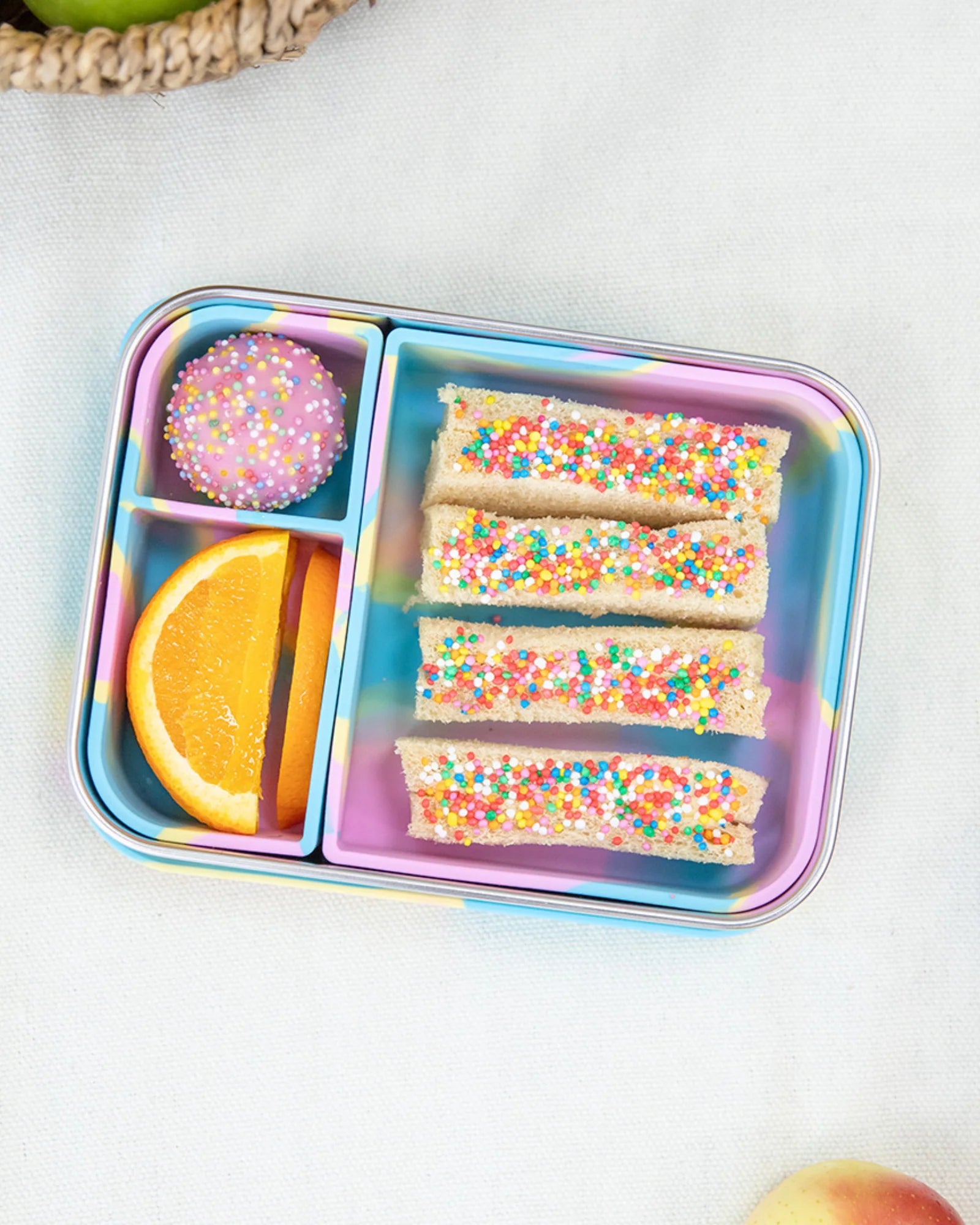 Use as one large lunch container, or divide in to 2 or 3 compartments with the removable silicone inserts.