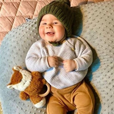 Designed by O.B. Designs in Australia, our popular soft rattle toys are irresistibly cute and a great first toy. It helps develop motor skills and the wooden ring soothes teething pain. The soft colour palette is inspired by our home in Byron Bay and surrounds. We are passionate about design and use a combination of master craftsmen and high-quality materials to create our collection. Each toy comes with a sweet and fun bio. Perfect for gifting and a wonderful keepsake.