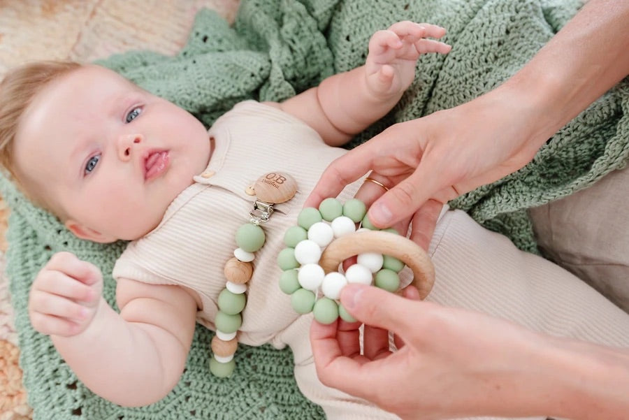 O.B Designs Sage | Eco-Friendly Teether | Organic Beechwood Silicone Toy