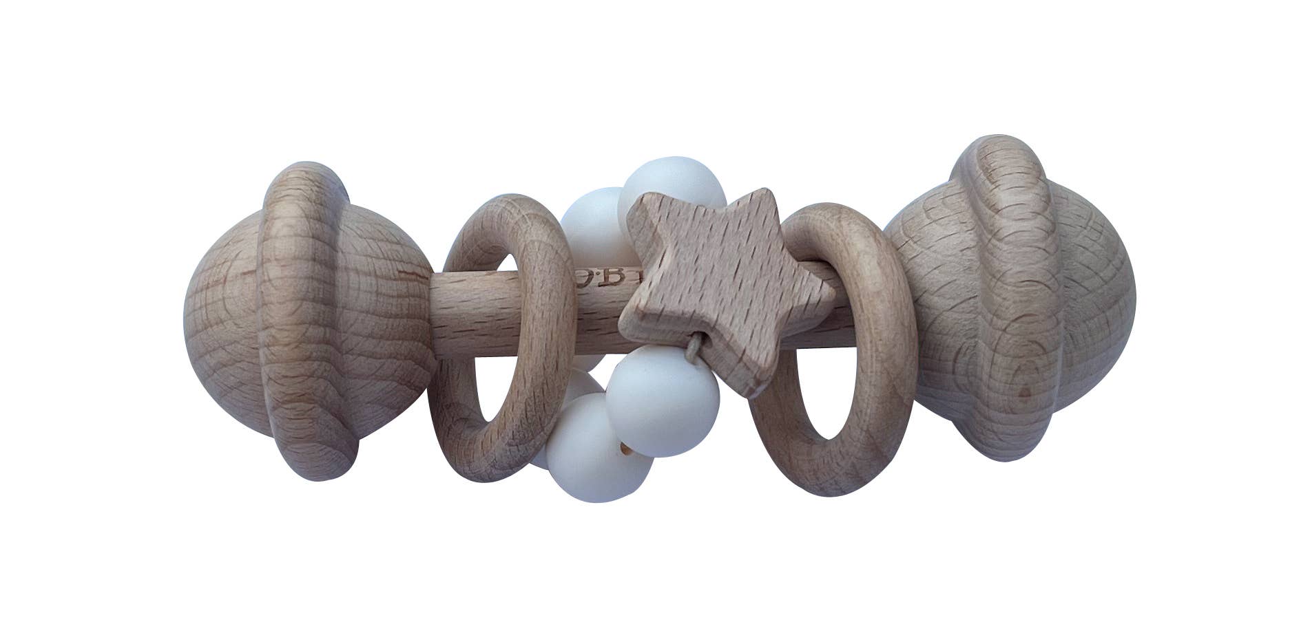 An eco-friendly rattle that is made from sustainable Beechwood Timber & Food Grade Silicone is a wonderful toy because when shaken, it makes a sweet clinking sound that your baby will love! They are also eco-friendly, non-toxic, free from harmful leads, metals, BPA, chemicals & phthalates. Silicone is a great sensory material and is soft on sore gums. Beechwood is naturally anti-bacterial.