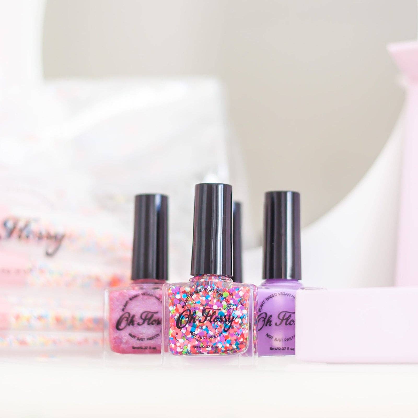 The fabulous Oh Flossy "Be Little, Shine Big" Kids Nail Polish range is perfect for those little ones who love to play and be creative while keeping them away from unsafe chemicals (and your nail polish!)
