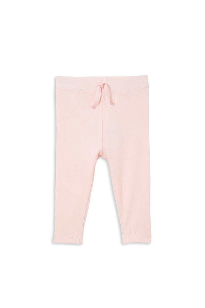 Milky Clothing Powder Pink Rib Baby Pant. These rib pants are a comfy and hardworking addition to your little one's wardrobe. Pair with the matching bodysuit or add some fun with a printed top. This is a versatile piece perfect for any season.