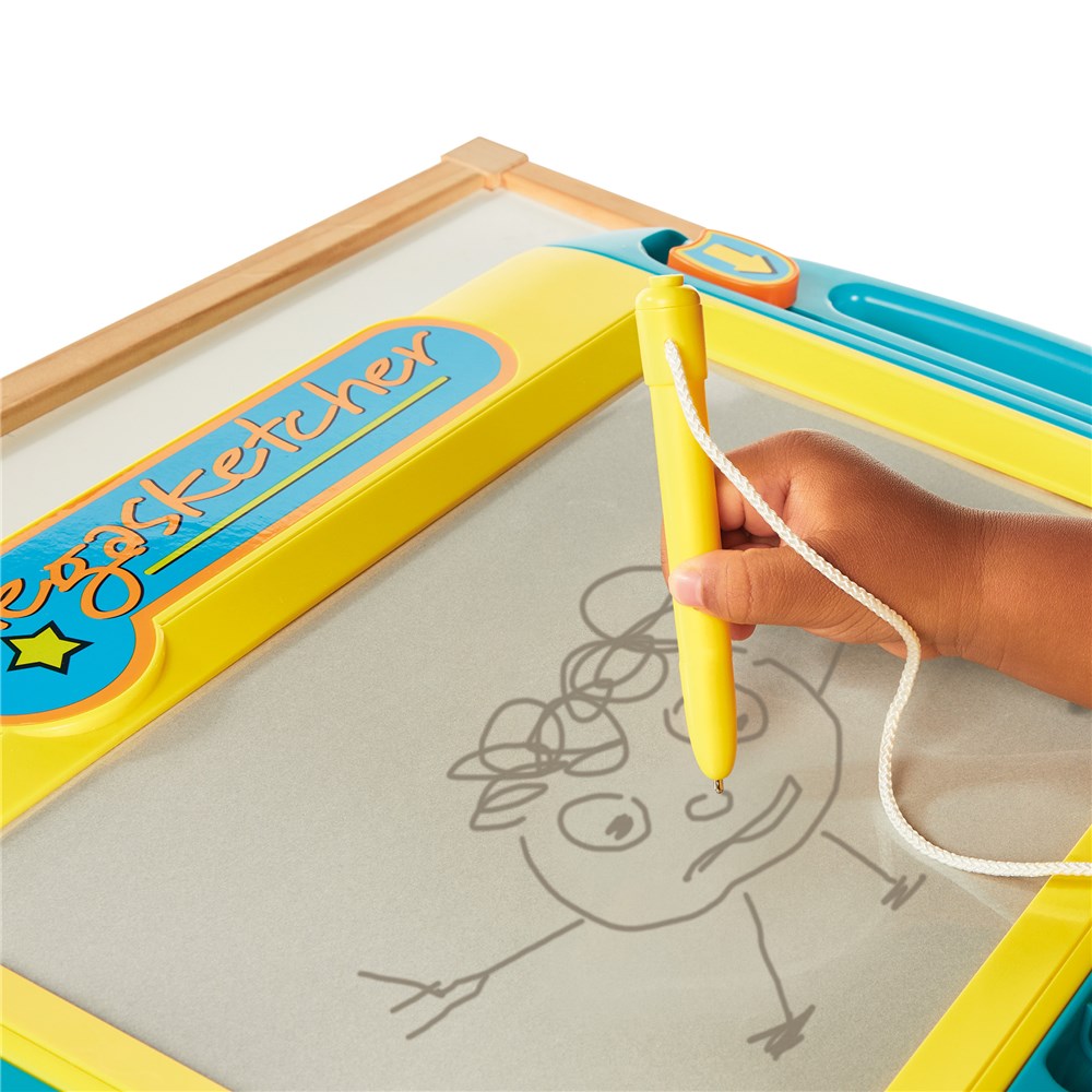 Motorised Megasketcher is the new TOMY mess-free doodling tool designed for early drawing skills and creativity development. Giving hours of fun, encouraging and developing your child's imagination. It's easy to erase once drawing is finished just slide the eraser lever down and it's ready to go again! Draw fine and thick lines with the attached pen and encourage unstructured creativity on your little one by sketching different shapes, animals, numbers and letters.