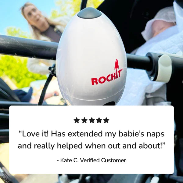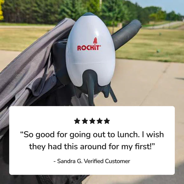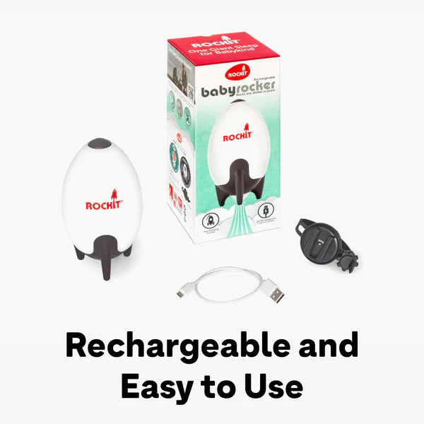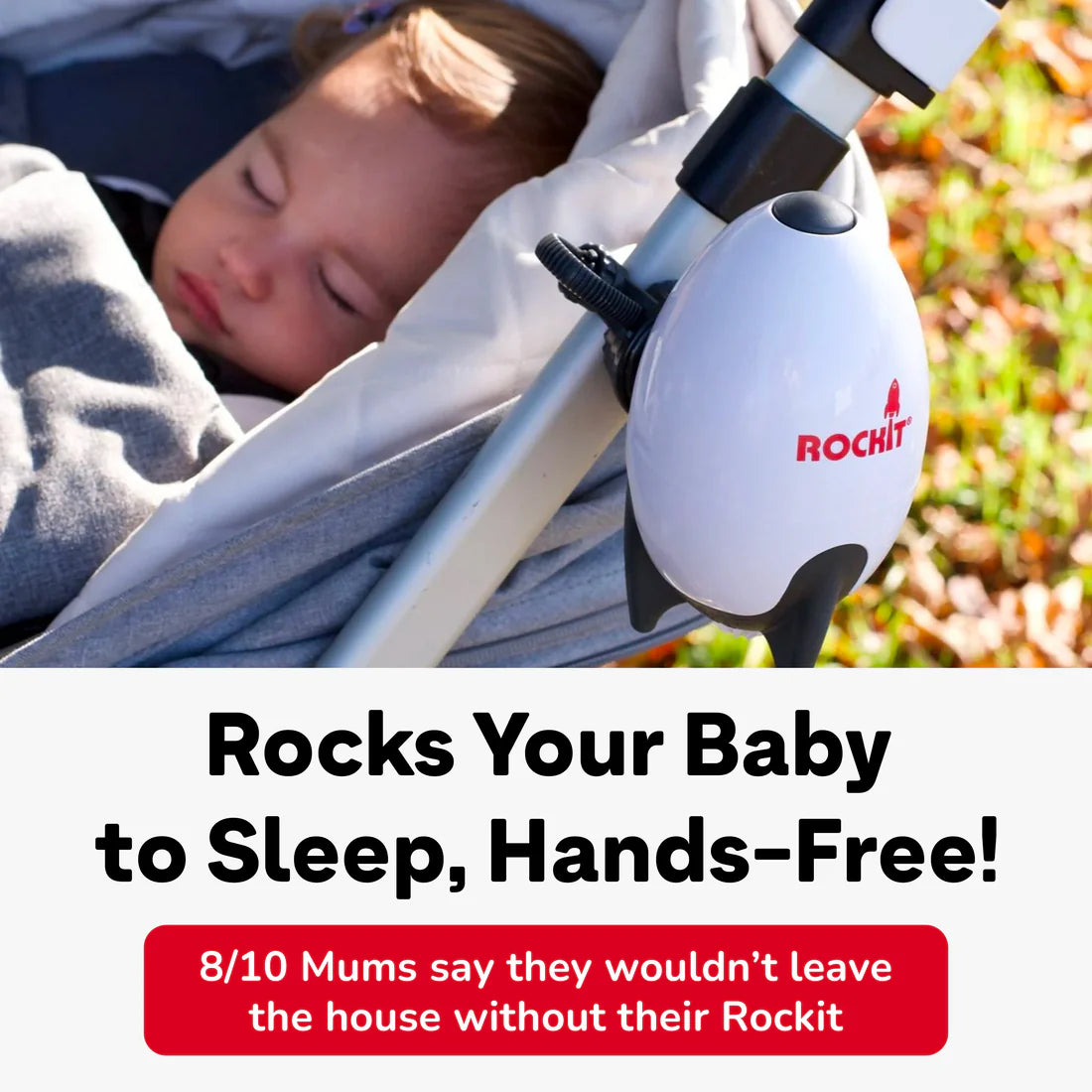 When you take your baby out and about or simply need to settle them into sleep, attach the Rockit Baby Rocker to your stroller to help give a gentle uninterrupted rock. Babies often wake as soon as you stop moving the pram, so the Rockit Pram Rocker will be your saviour and keep your pram rocking for you. The quiet motor on this pram rocker has an adjustable speed and will free up your hands and give you a bit of extra time back to get on with your day. This new and more efficient version is USB rechargeable (the OG version had batteries).