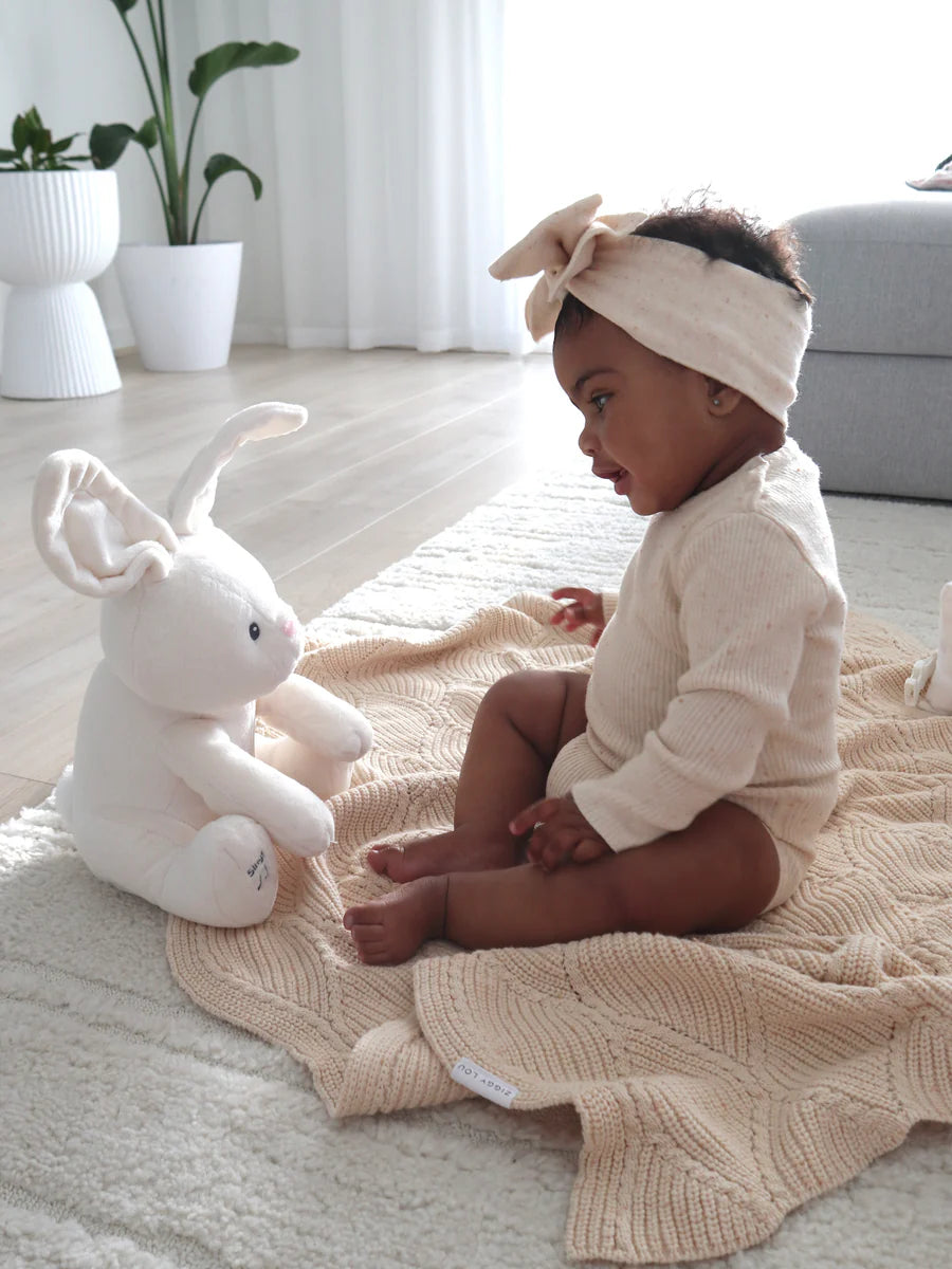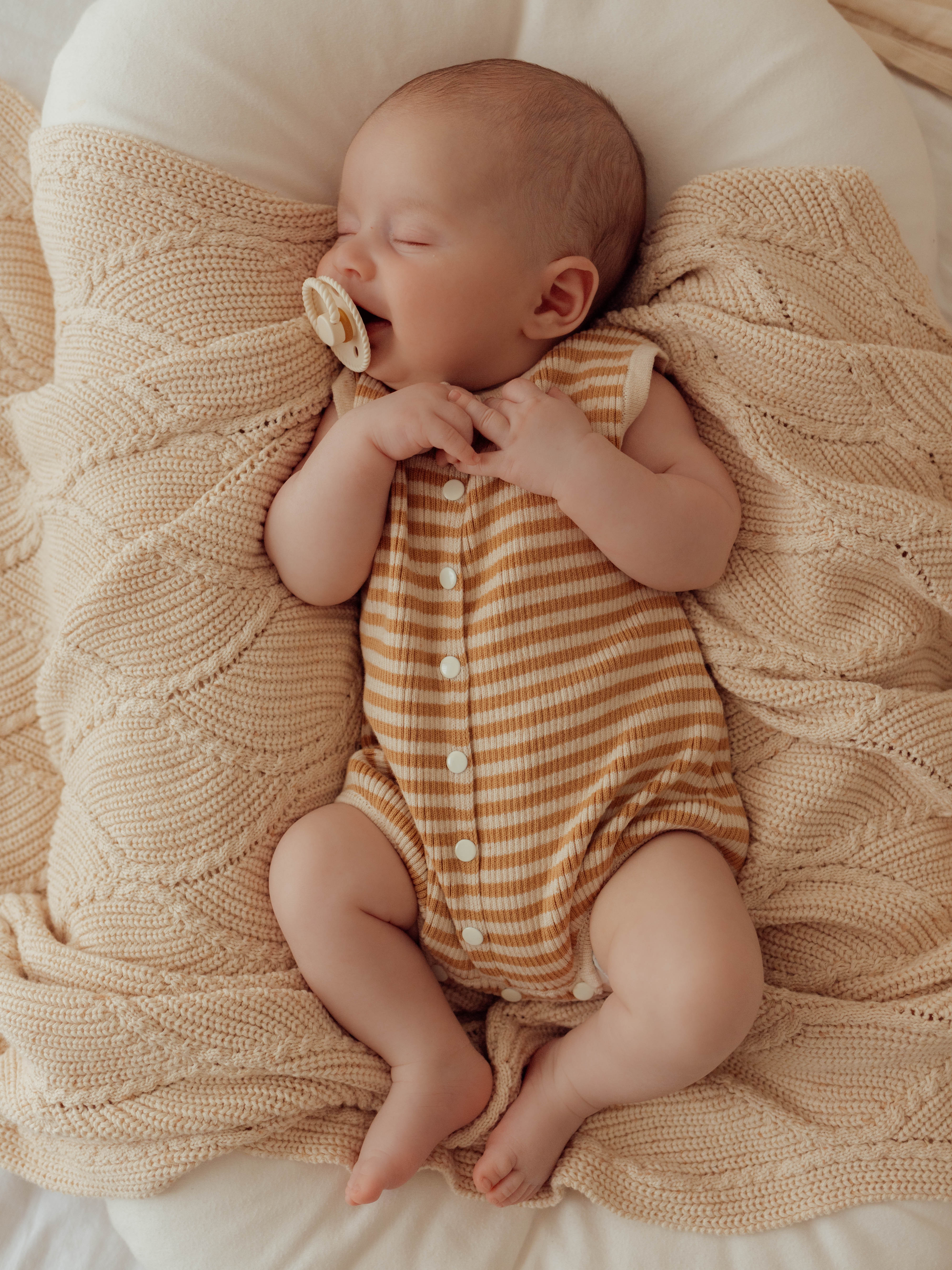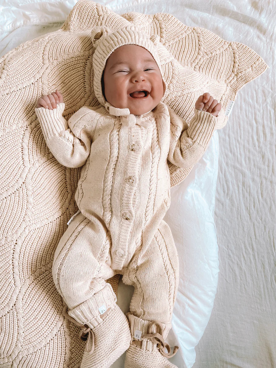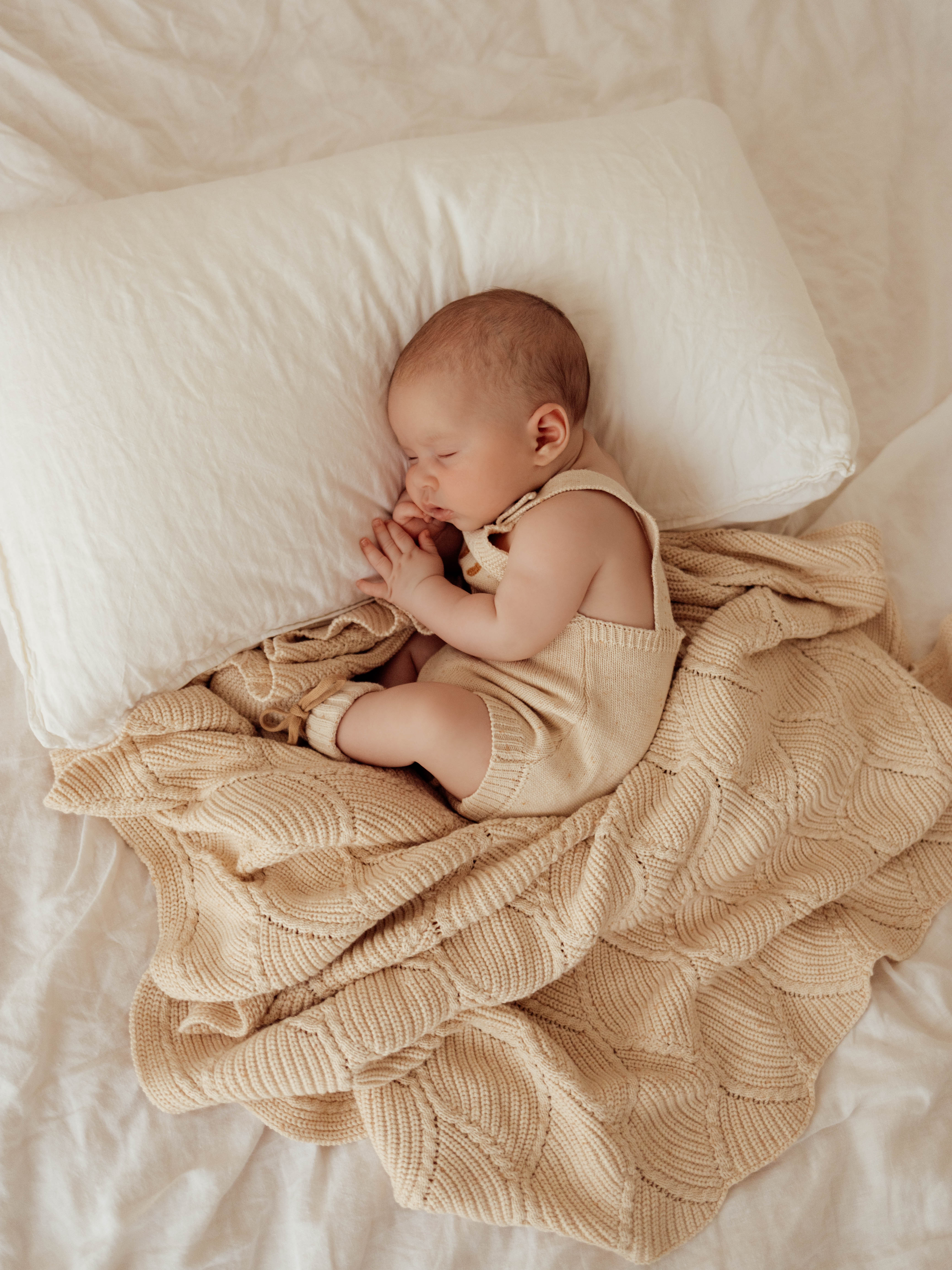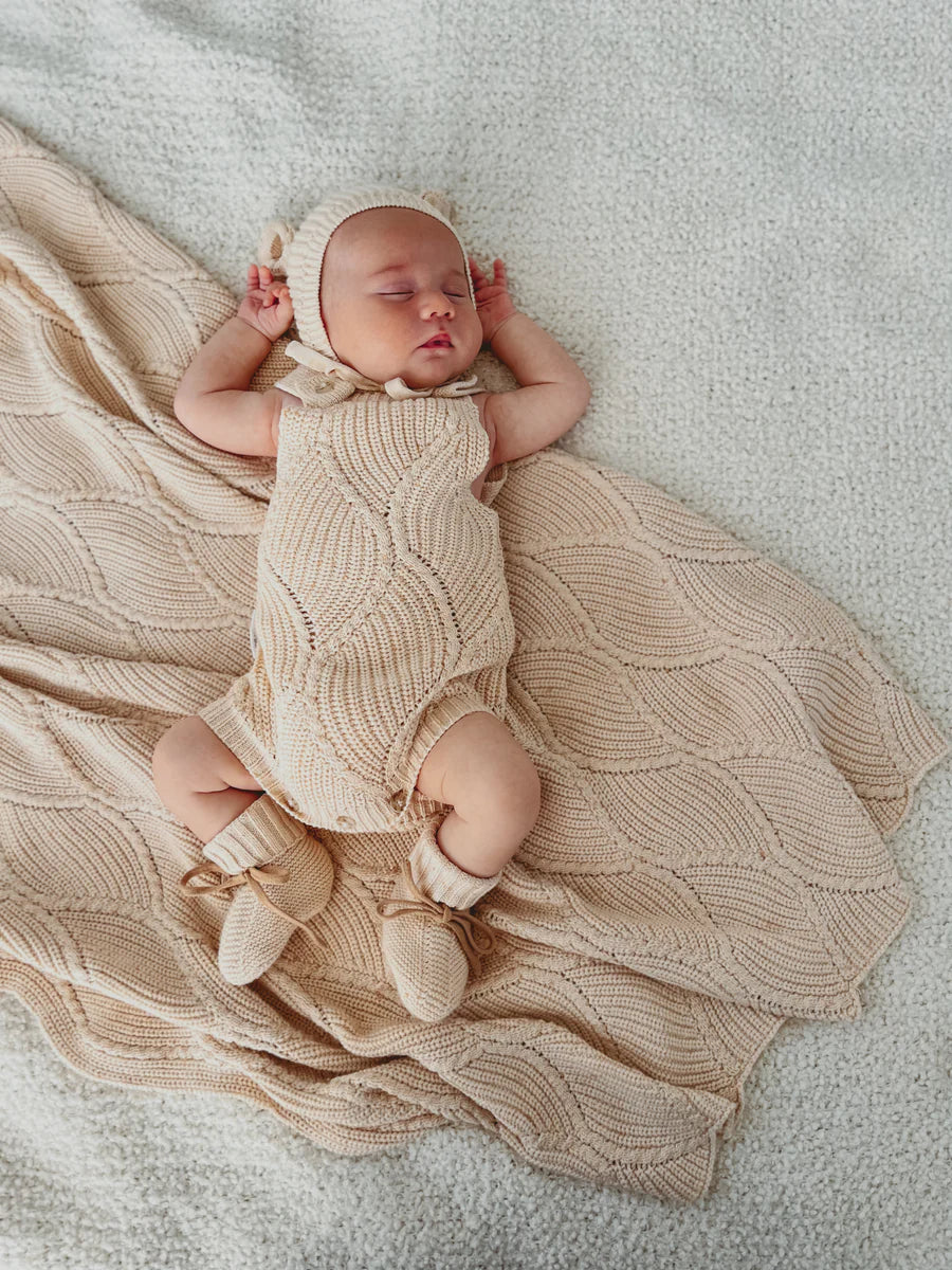 Beautiful knitted blanket with diamond wave knit detail. Perfect staple blanket for your little one.