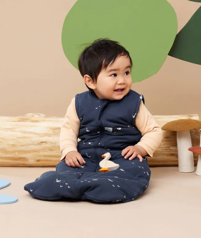 The 2.5 TOG Jersey Sleeping Bag is perfect for keeping a child warm overnight in rooms 17-23°C / 63-73°F. The TOG rating means that there is no need for additional blankets in the cot when using this product, making it a safe-sleep option. Parents can be rest assured that the breathable organic, natural fibres will help regulate their child’s temperature and prevent overheating. Parents can follow the FREE room thermometer and What to Wear guide provided with the product, to layer appropriately underneath to keep their child warm. We recommend pairing this pouch with one of our TOG-rated Layers or Bodywear underneath, and Arm Warmers can be added on top of the pouch for extra warmth (all sold separately).
