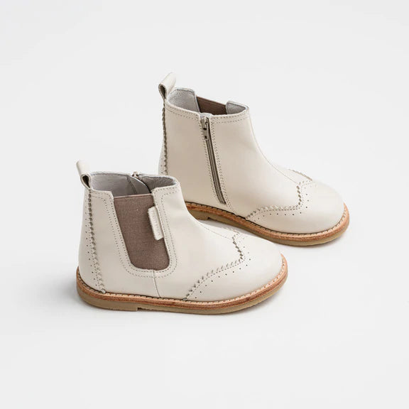Inspired by the classic Chelsea Boot style, the Windsor Boot is a timeless design featuring brogue detailing, a reinforced toe panel and a crepe rubber outsole. The elastic gusset and inside zip make this boot super easy for children to put on and take off.