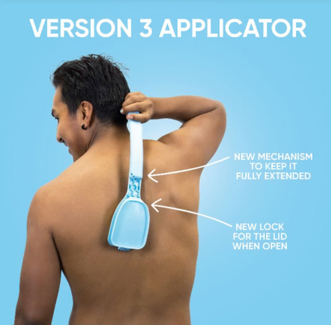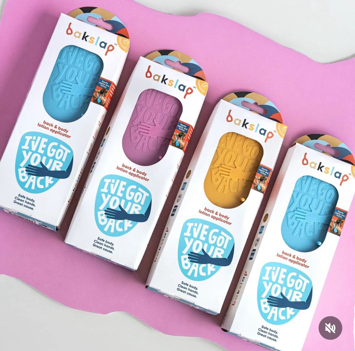 We invented the versatile bakslap applicator to help you apply ANY lotion to those hard to reach places. A complete skin care device, offering replaceable and washable exfoliating loofah & lotion sponge pads. We're thrilled to now offer you the latest bakslap...based on your feedback and 1000+ reviews, we've improved: