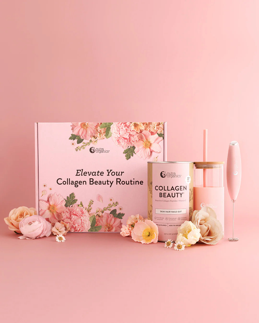 Elevate your Collagen Beauty routine with this beauty of a box! Featuring 450g Collagen Beauty, a Glass Drinking Flask and Pink Whiz Stick - the perfect trio for a daily wellness routine for beauty from the inside-out, thanks to Verisol Bioactive Collagen Peptides, wholefood zinc, vitamin C and silica to support skin, hair, nails and gut wellbeing. This pretty-in-pink box also makes for the perfect gift that’s wrapped and ready to glow.