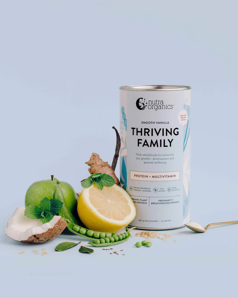 Protein Blend (Sprouted & Fermented Pea*, Sprouted Brown Rice*), Rice Milk*, Coconut Milk*, Natural Flavour, Arctic Sea Algae* (Calcium), Linseed*, Prebiotic Fibres (Apple Pectin, Inulin*), Wholefood Vitamin & Mineral Extracts (Curry Leaf, Guava, Amla, Achiote Seed, Holy Basil, Lemon), Vanilla Bean (0.3 %), Probiotic BC30® (Bacillus coagulans GBI-30, 6068), Natural Sweetener (Thaumatin). *Certified Organic Ingredients