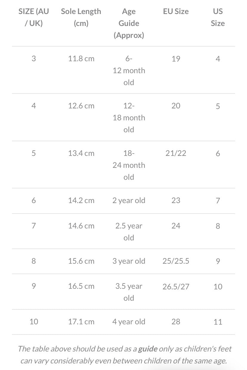 Lace free design with an elastic band on one side and a side zipper on the other. Secure enough for free play yet so easy to put on and take off wriggly little feet.