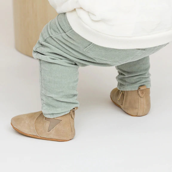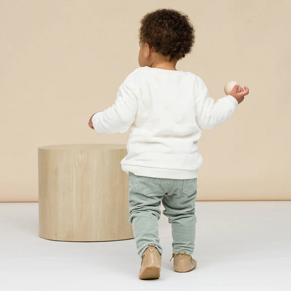 Soft, flexible outsole to allow for baby’s natural foot development and sensory support when learning to walk