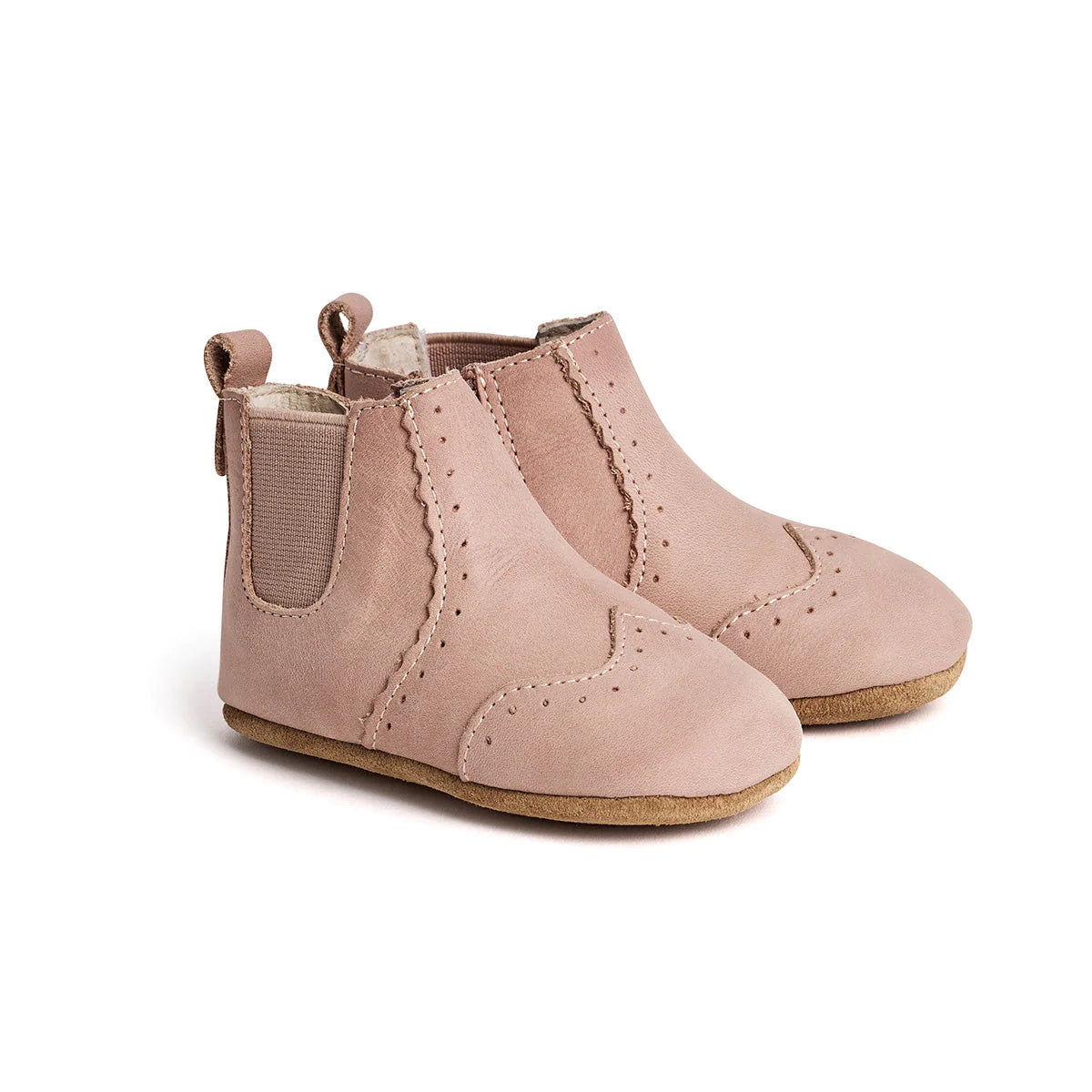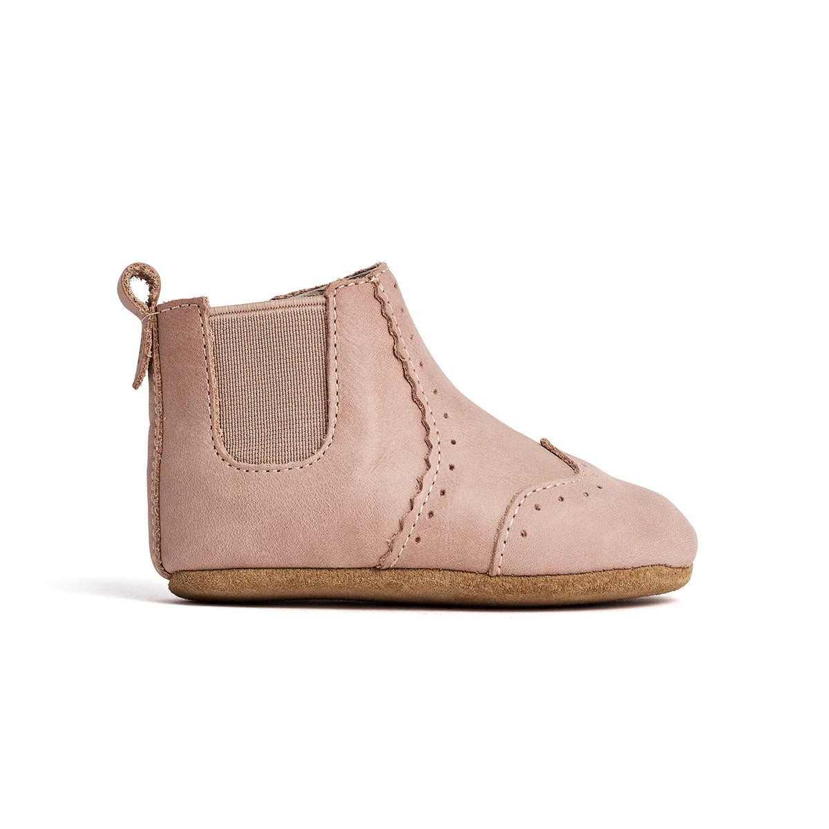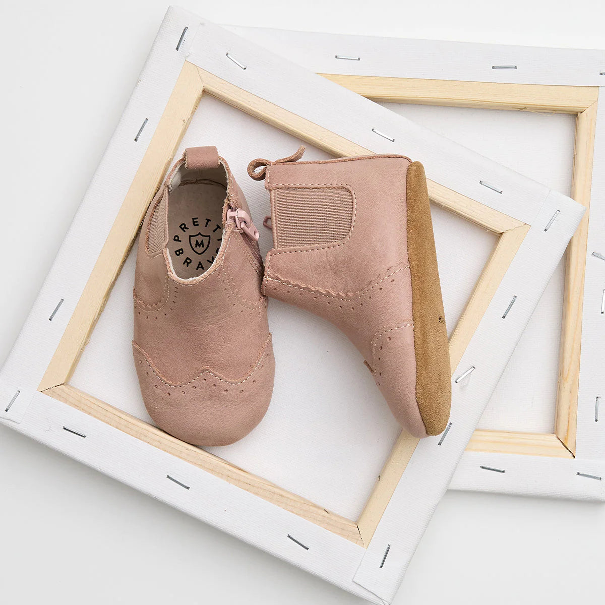 Inspired by the classic Chelsea Boot style, the Baby Windsor is a heritage design featuring lux brogue detailing, a reinforced toe panel, rear pull tab and an inner side zip. Available in Sand and Blush.