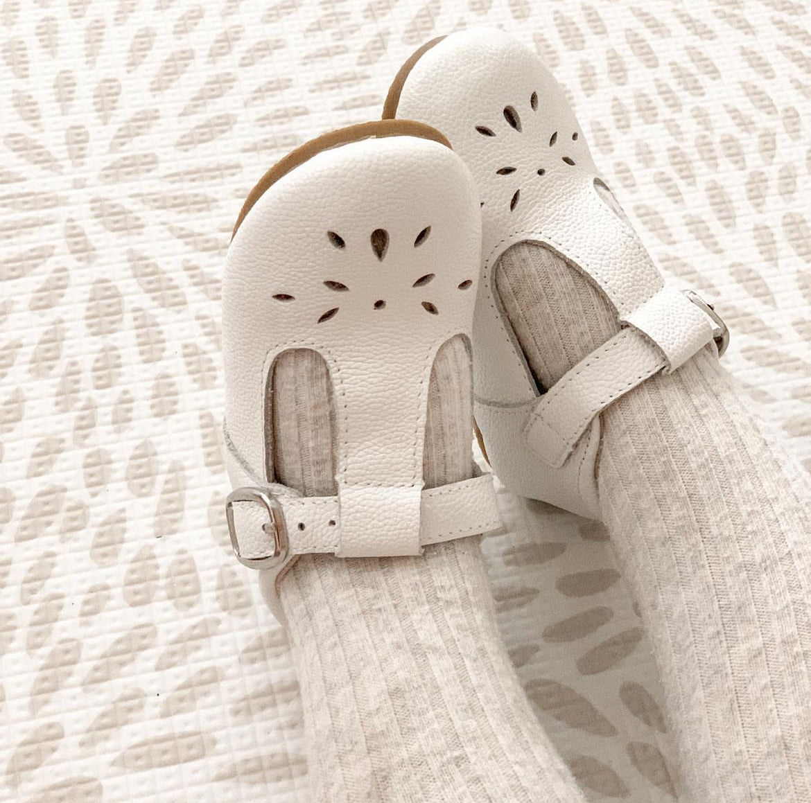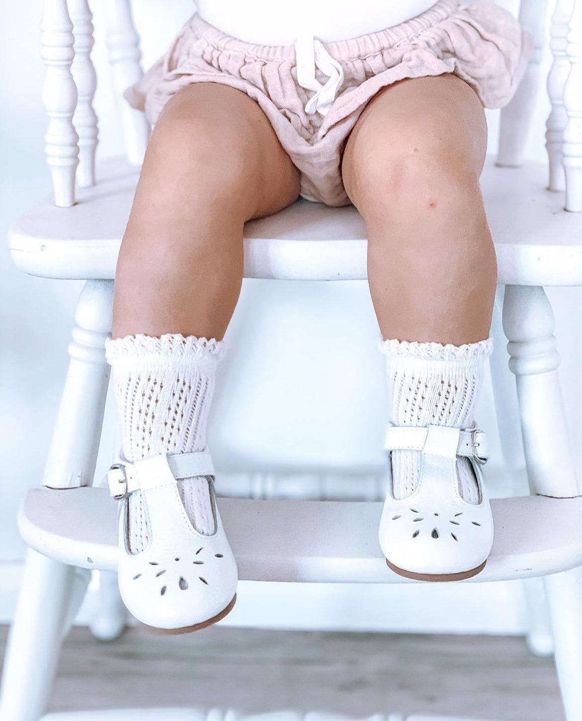 Look no further we have the most gorgeous white t-bars with just a cute petal cut out detail on the front