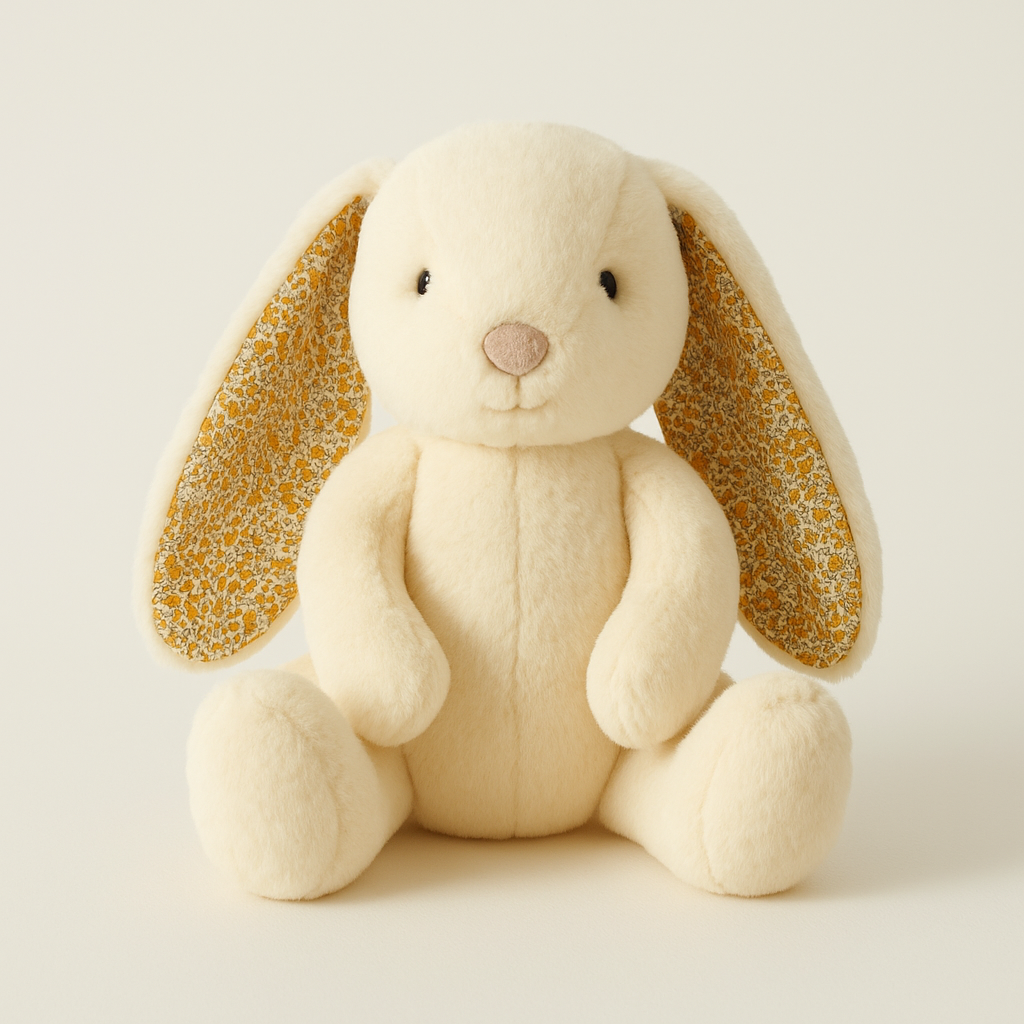 Jiggle & Giggle Floral Lemon Bunny Medium is a cuddly companion made for comfort, play, and display. With soft pastel lemon-yellow fur, floral-lined floppy ears, and a beanie-weighted base, this bunny sits upright and is perfectly sized for little hands to hold.