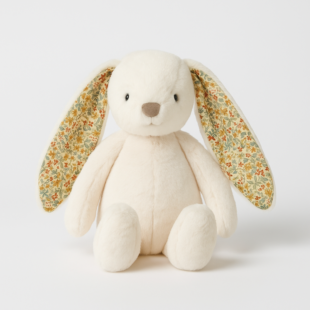 This lovable bunny is the perfect companion for newborns and toddlers! Made from ultra-plush fabric, featuring beautiful floral detailed ears and child-safe trimmings, little ones will love the feel of its irresistibly soft fur, making it great for cuddles. Its beanie bottom will help it sit upright during playtime or when displayed on the shelf. This bunny also loves going on adventures and can be carried around by its floppy ears, which are the perfect size for little hands to hold.