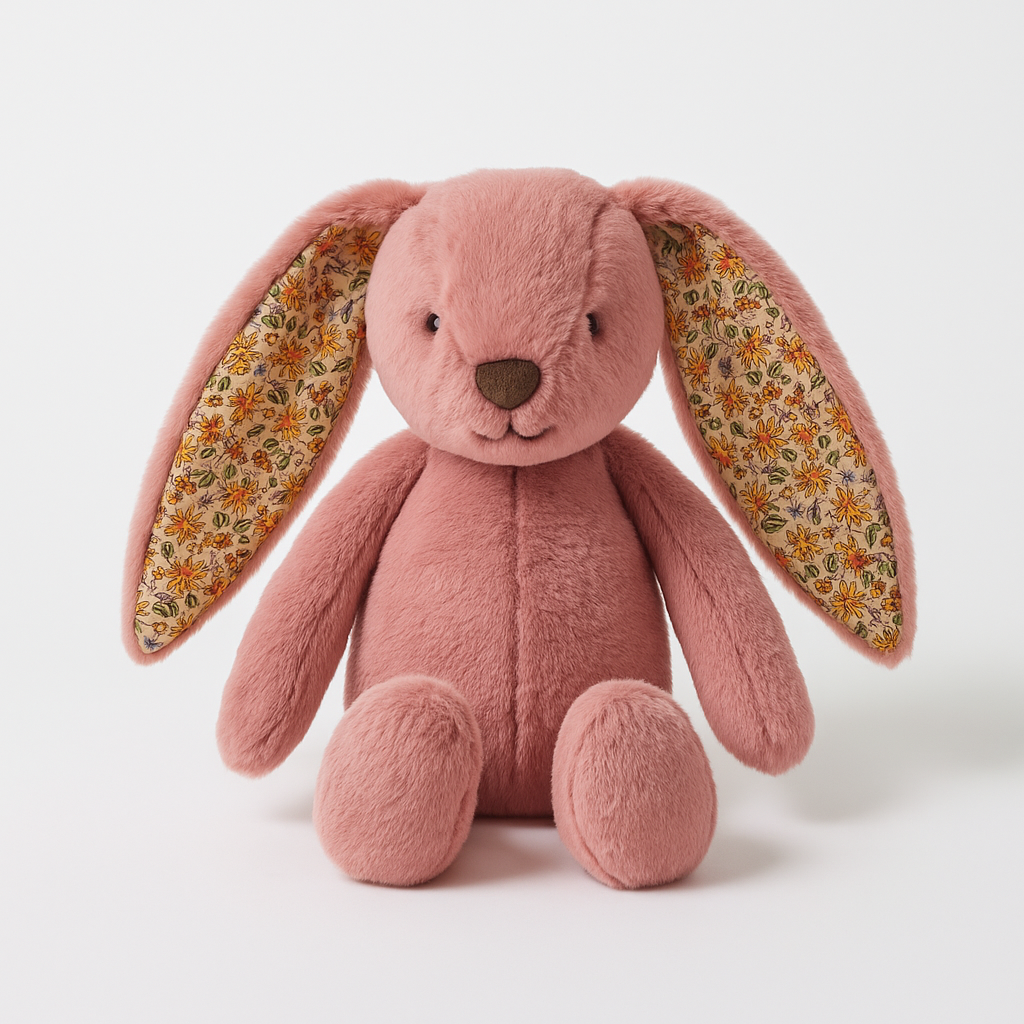 This lovable bunny is the perfect companion for newborns and toddlers! Made from ultra-plush fabric, featuring beautiful floral detailed ears and child-safe trimmings, little ones will love the feel of its irresistibly soft fur, making it great for cuddles. Its beanie bottom will help it sit upright during playtime or when displayed on the shelf. This bunny also loves going on adventures and can be carried around by its floppy ears, which are the perfect size for little hands to hold.