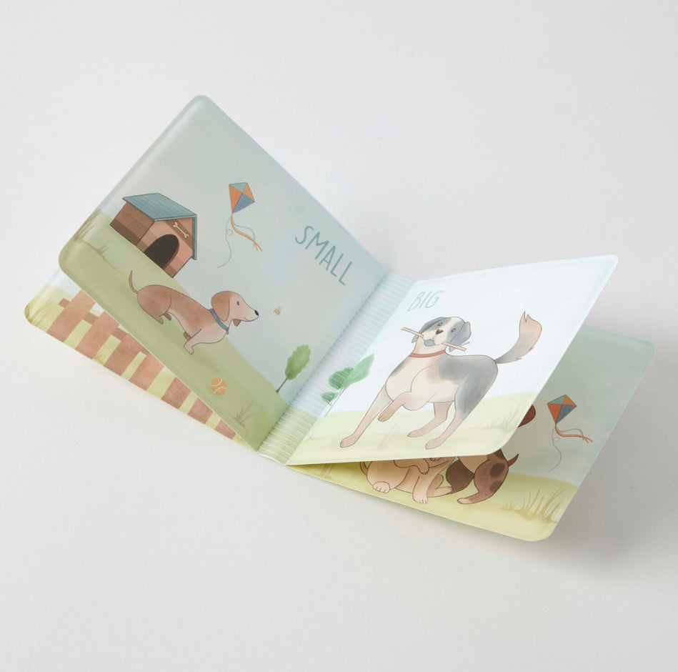 Spark the little one’s imagination during bath time with the Puppy Play Bath Book. Its lovely design and soft waterproof material make it the ideal bath toy. Each page in this bath book contains educational imagery—all with the help of adorable puppies!