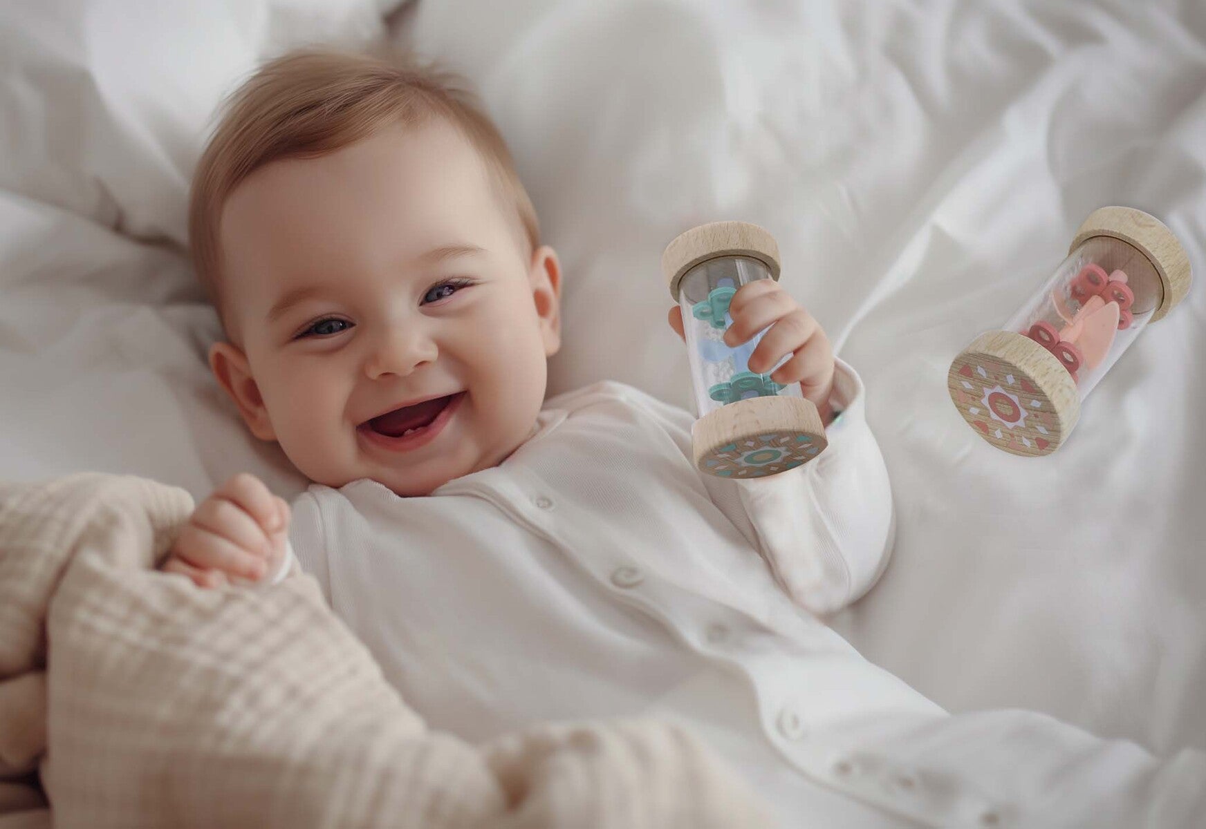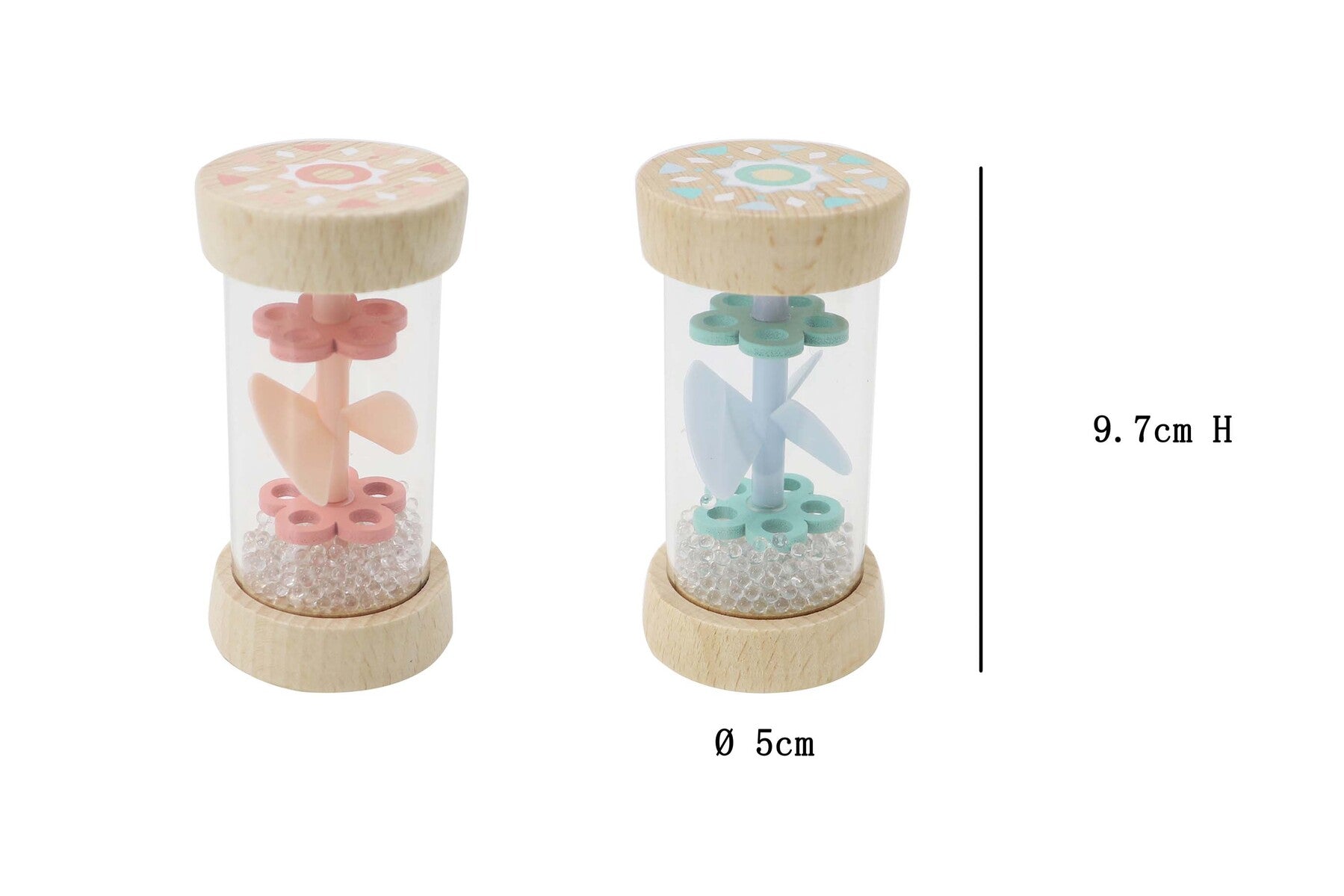 Crafted with simplicity and sustainability in mind, these rattles engage children through sight, sound, and touch. The gentle whirling motion and calming sound effects captivate their attention, promoting sensory exploration and auditory development.