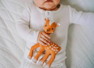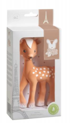 Made using 100% natural rubber and edible paint, Fanfan the fawn is the first toy for babies younger than 3 months that stimulates all their senses.