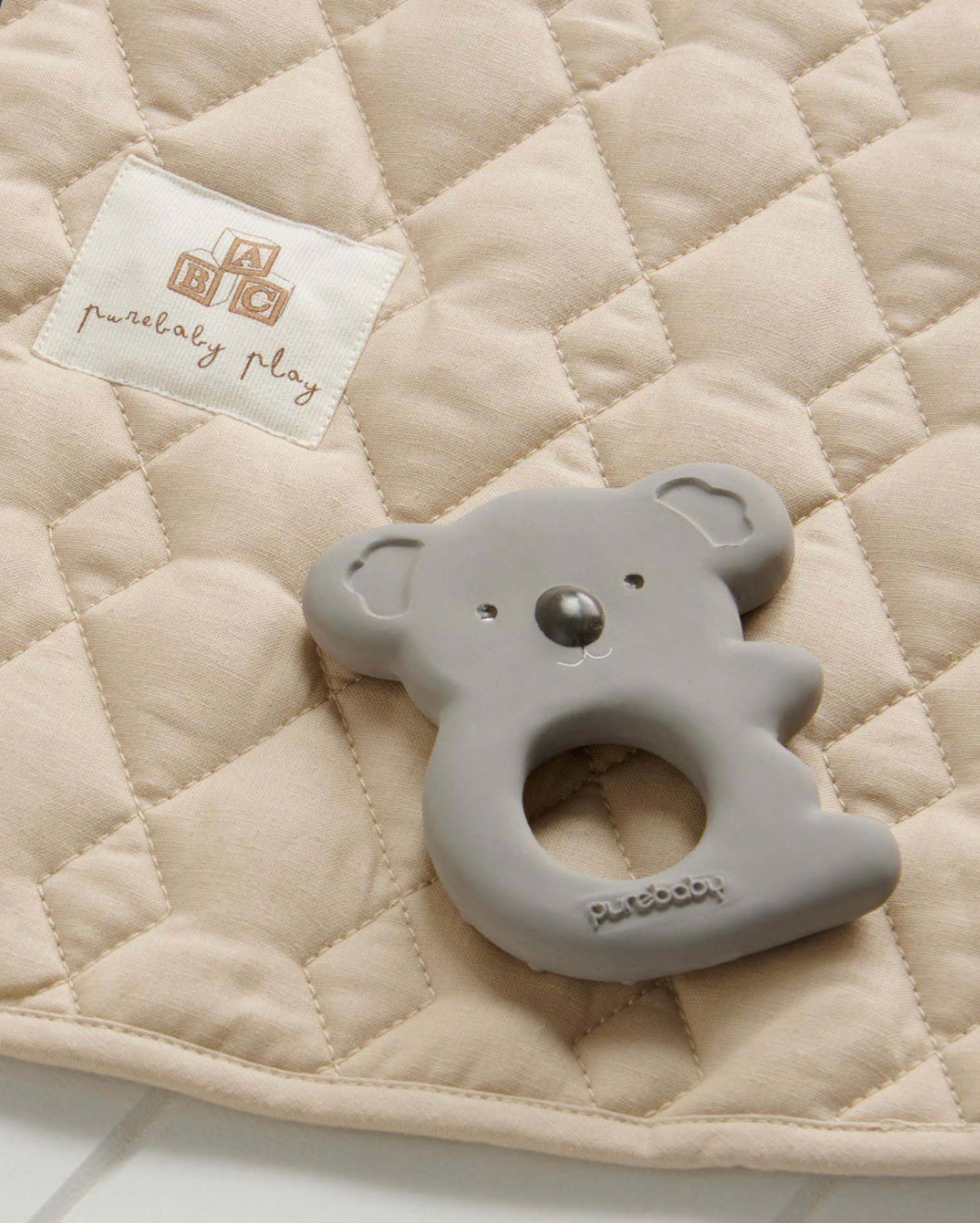 Our Koala Teether is fantastic for soothing irritated little gums! Their little hands will be able to hold onto the thoughtfully designed koala which is perfect for development in hand and eye coordination. Made from 100% Natural Rubber to soothe those gums.