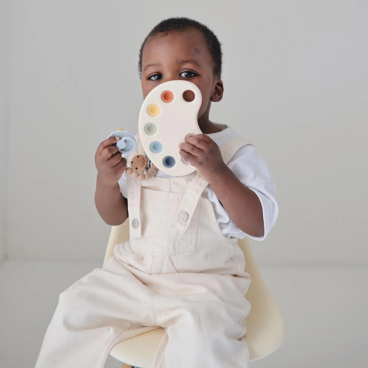 A fun press toy inspired by art and paint palettes made for little hands to hold. The toy promotes fine motor skills and encourages sensory exploration with paint bubbles that can be pushed and popped.