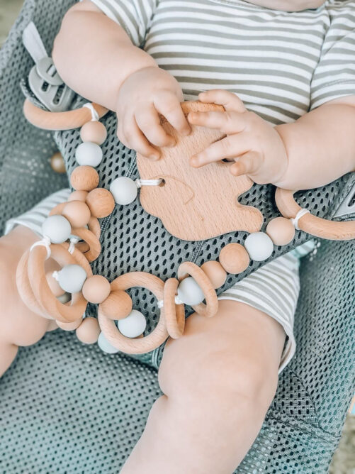 Made from natural beads and silicone which are left untreated making them free of any harsh chemicals. Our pram garlands toys are designed to be used on most bouncers, capsules or prams. Weight: 0.22kg.