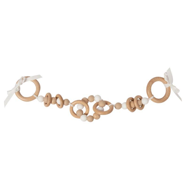 Our handmade modern pram garlands toys are perfect to stimulate your baby's senses and are designed to help your baby learn skills such as reaching and grasping as well as increase their muscle development, hand-eye coordination and gross motor skills. Made from natural maple beads and silicone beads which are left untreated making them free of any harsh chemicals. Our Pram Garlands have been tested and comply to Australian Standards. Each pram garland are handcrafted therefore sizes may vary slightly.