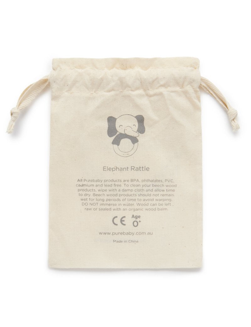 This Elephant Rattle is engaging and sweet for those little hands to grab a hold of and wrap their fingers around. Featuring a knitted elephant with rattle included and set on a beech wood ring.