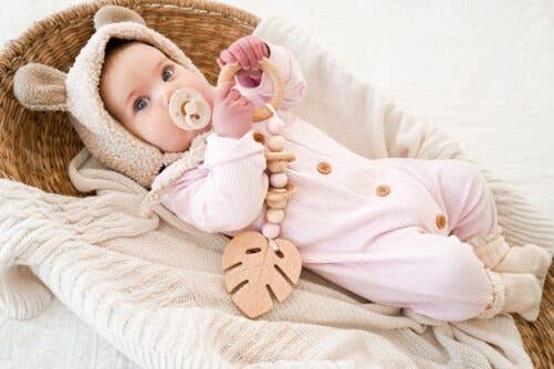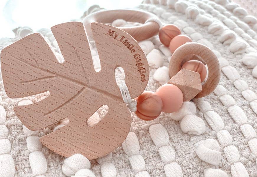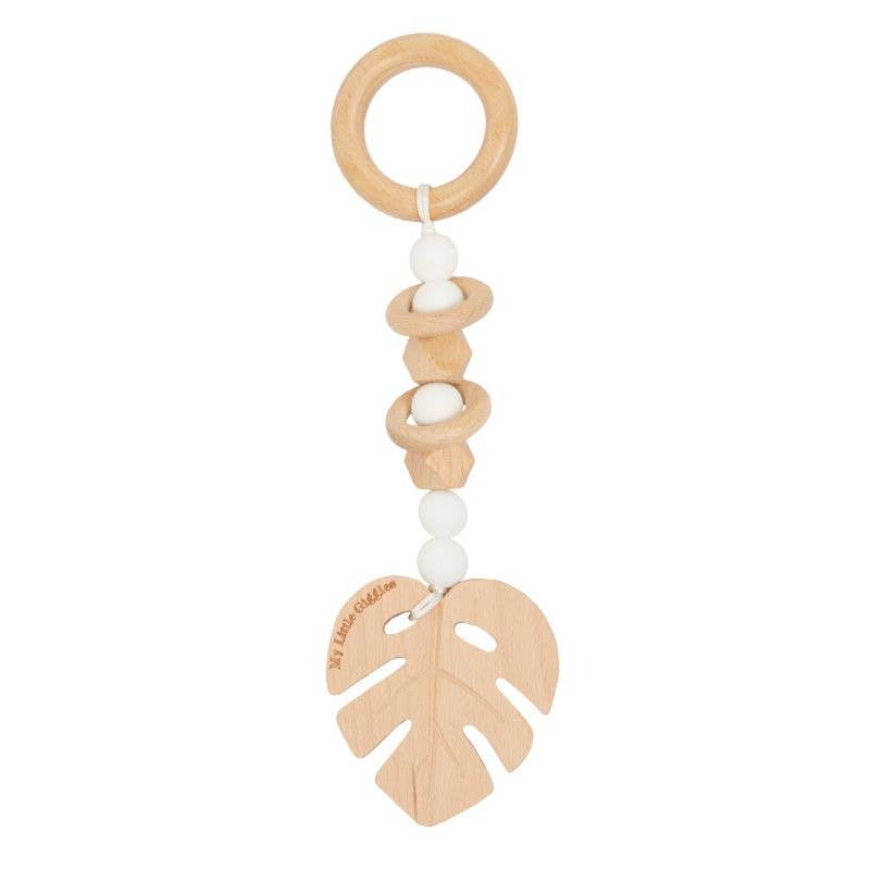 Rattle Teether: Natural & White Leaf