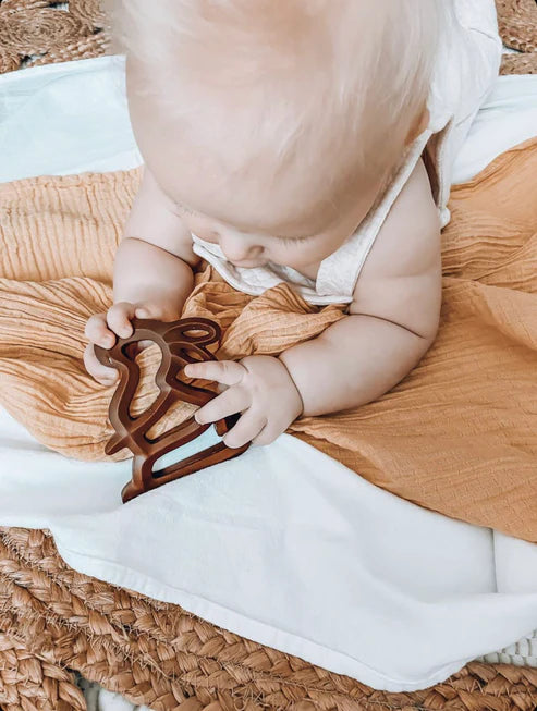 Our silicone bunny teether is a MUST HAVE for your teething babe. Our bunny is easy to hold and designed with little hands in mind, it will not only soothe sore and tender gums, but it will also help babies with different tactile sensations as they bend, twist, chew, and play!