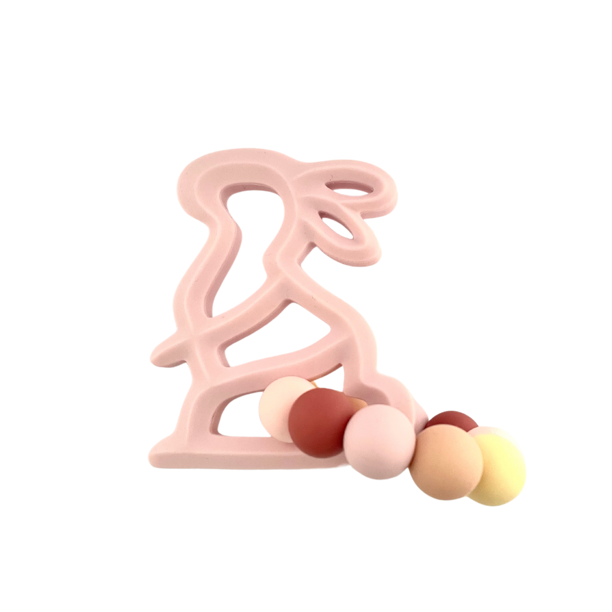 Silicone Bunny with Ring Teether Duo: Peach n Pink Rainbow