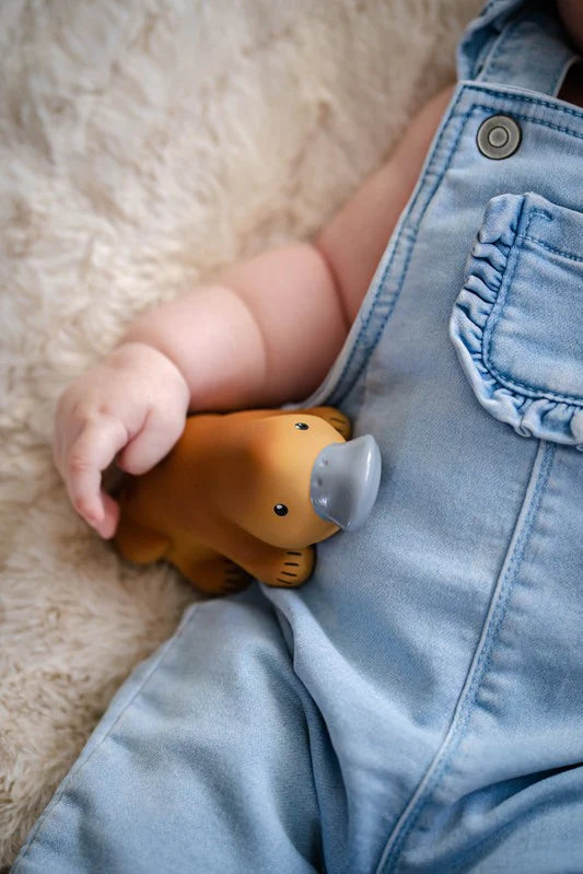 This iconic Aussie animal is sure to make a splash during a baby's playtime. The design features a little bell that rattles inside to delight, and its lovely bill provides a soothing place to relieve teething gums.