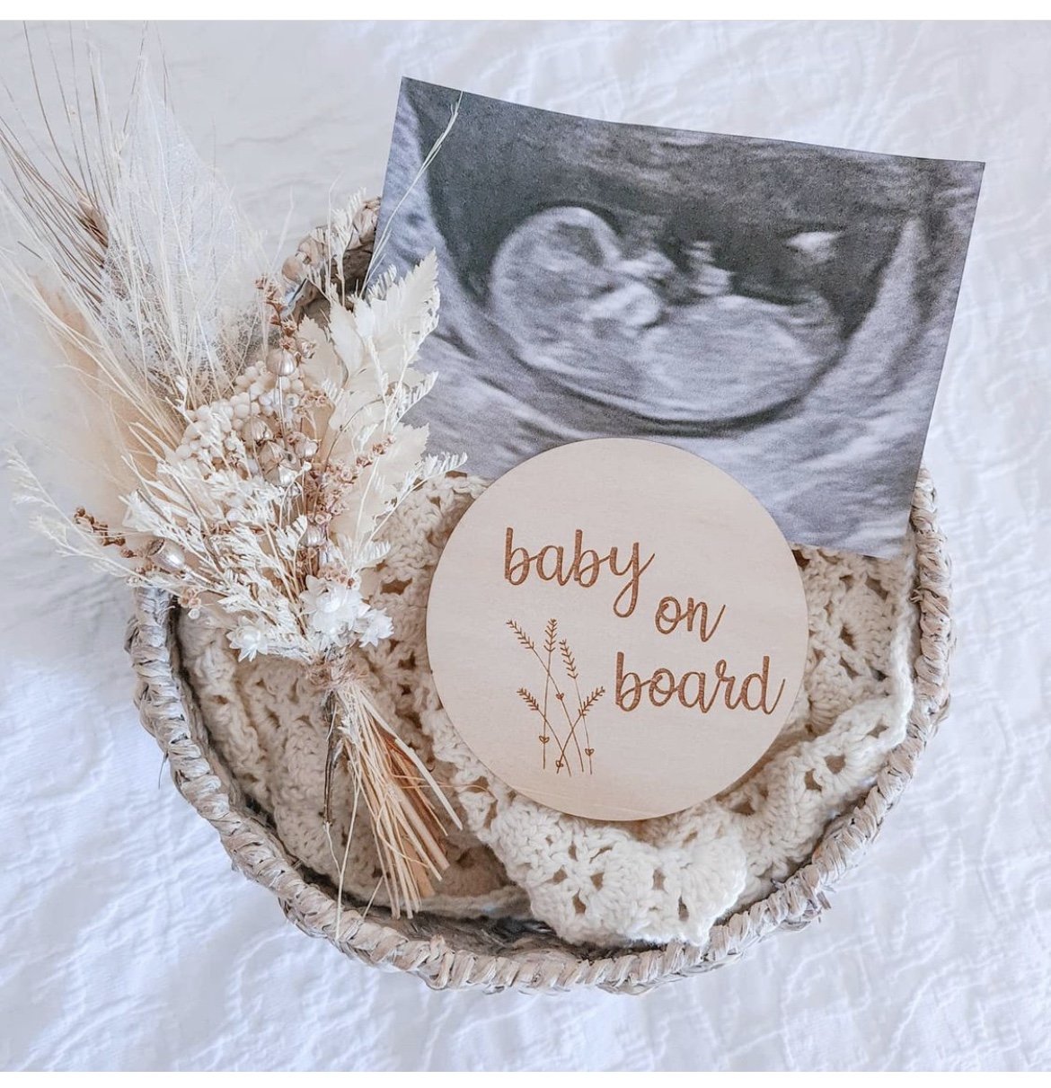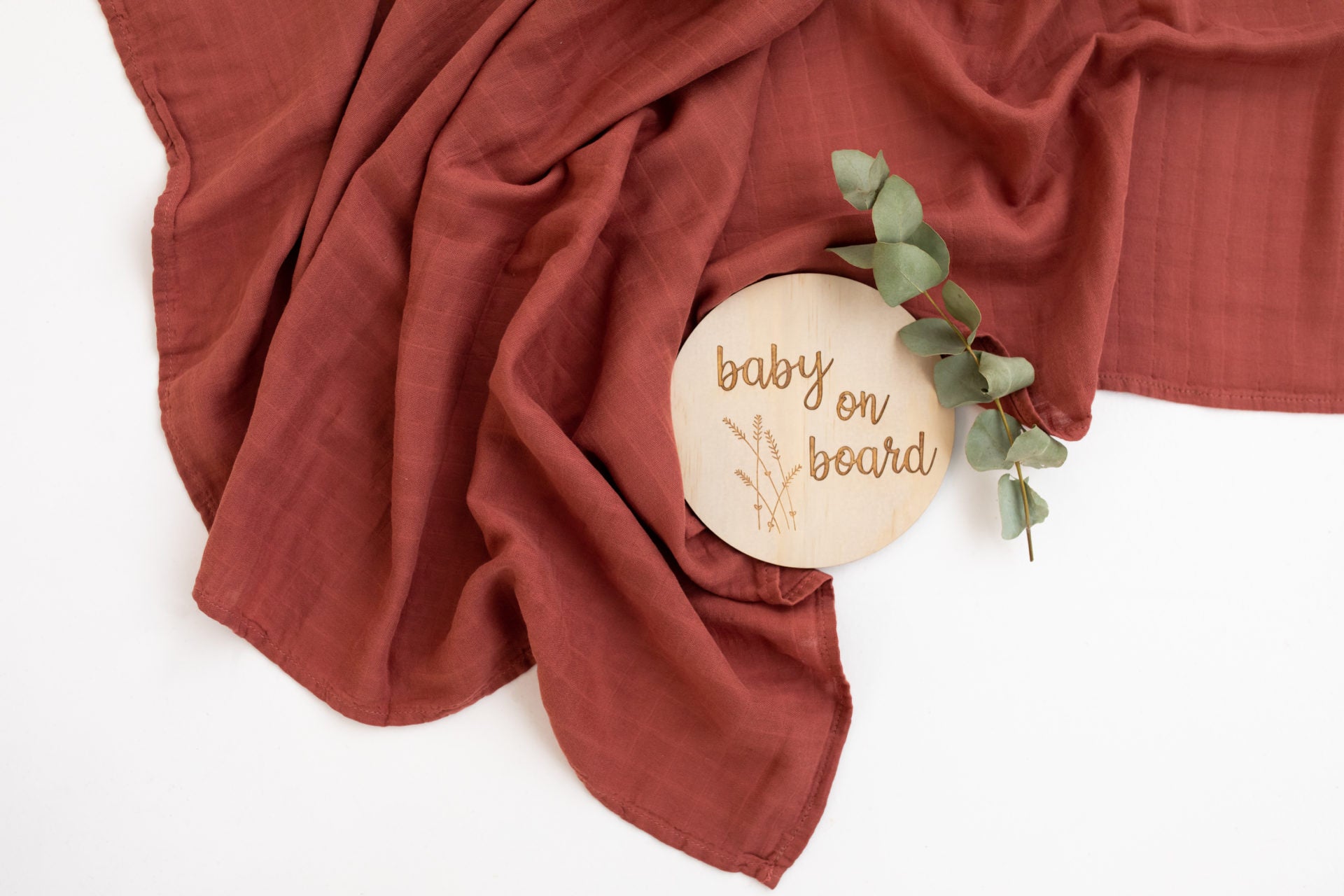 This birth announcement disc is laser carved on a quality 3mm wooden disc with “baby on board” etched with botanical details