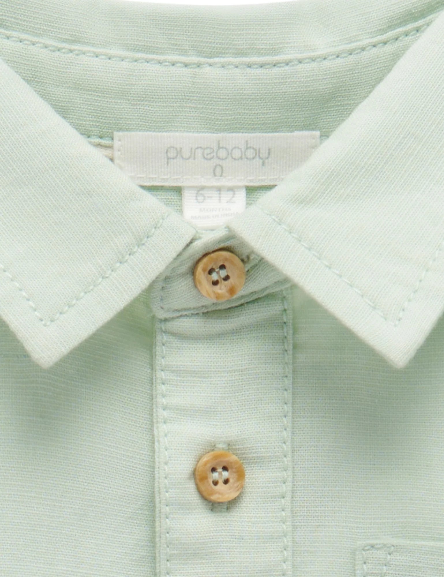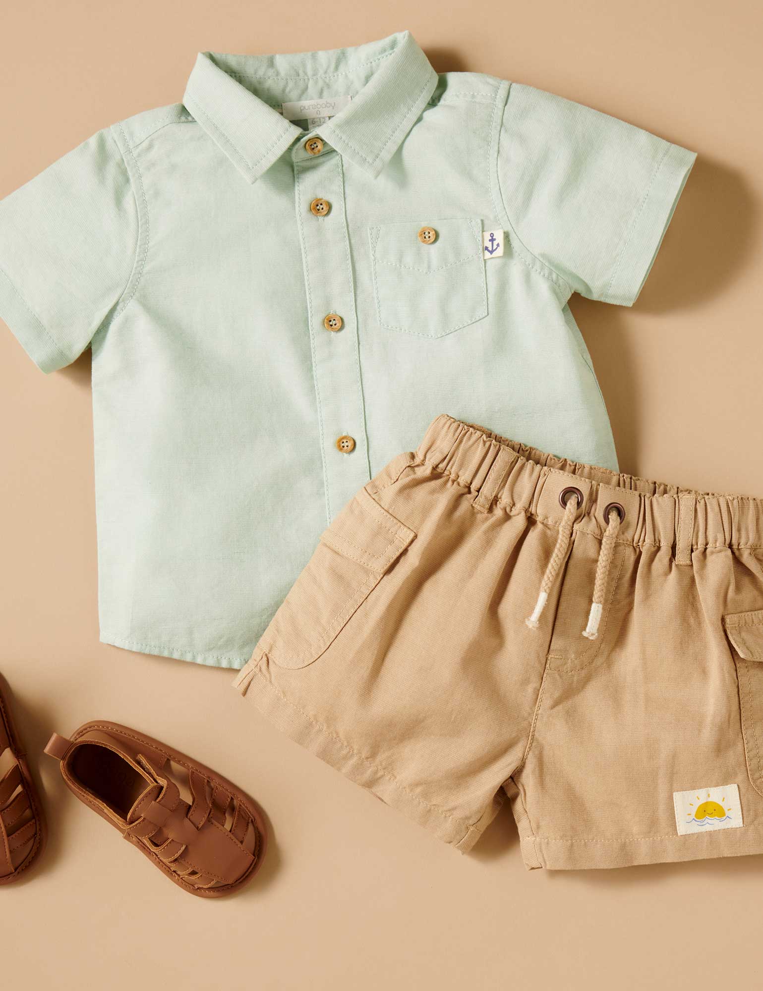 Our Linen Blend Shirt is great classic style for dressier occasions. Featuring a structured collar and front pocket. Made from our soft organic cotton linen blend, this style is both breathable and easy care. Looks great with our Linen Blend Shorts for a smart look.