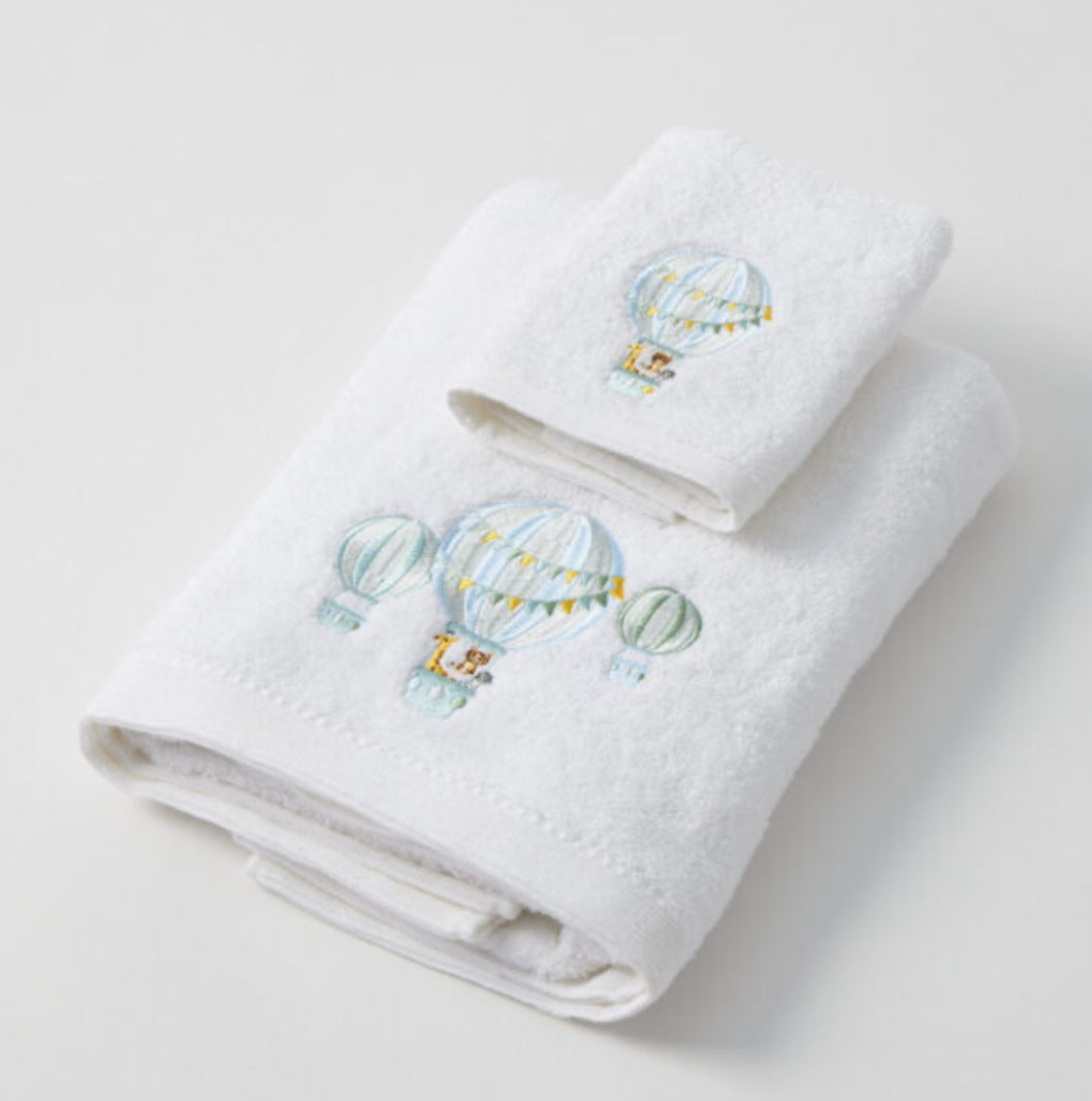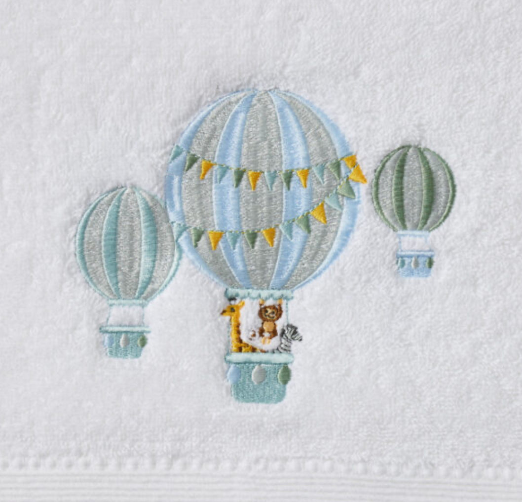 Make bath time extra special with the Balloon Voyage Towel and Face Washer Set, perfect for bub’s first bath and beyond. Crafted from super soft, absorbent cotton towelling that’s gentle on delicate skin and features intricately embroidered hot air balloons.
