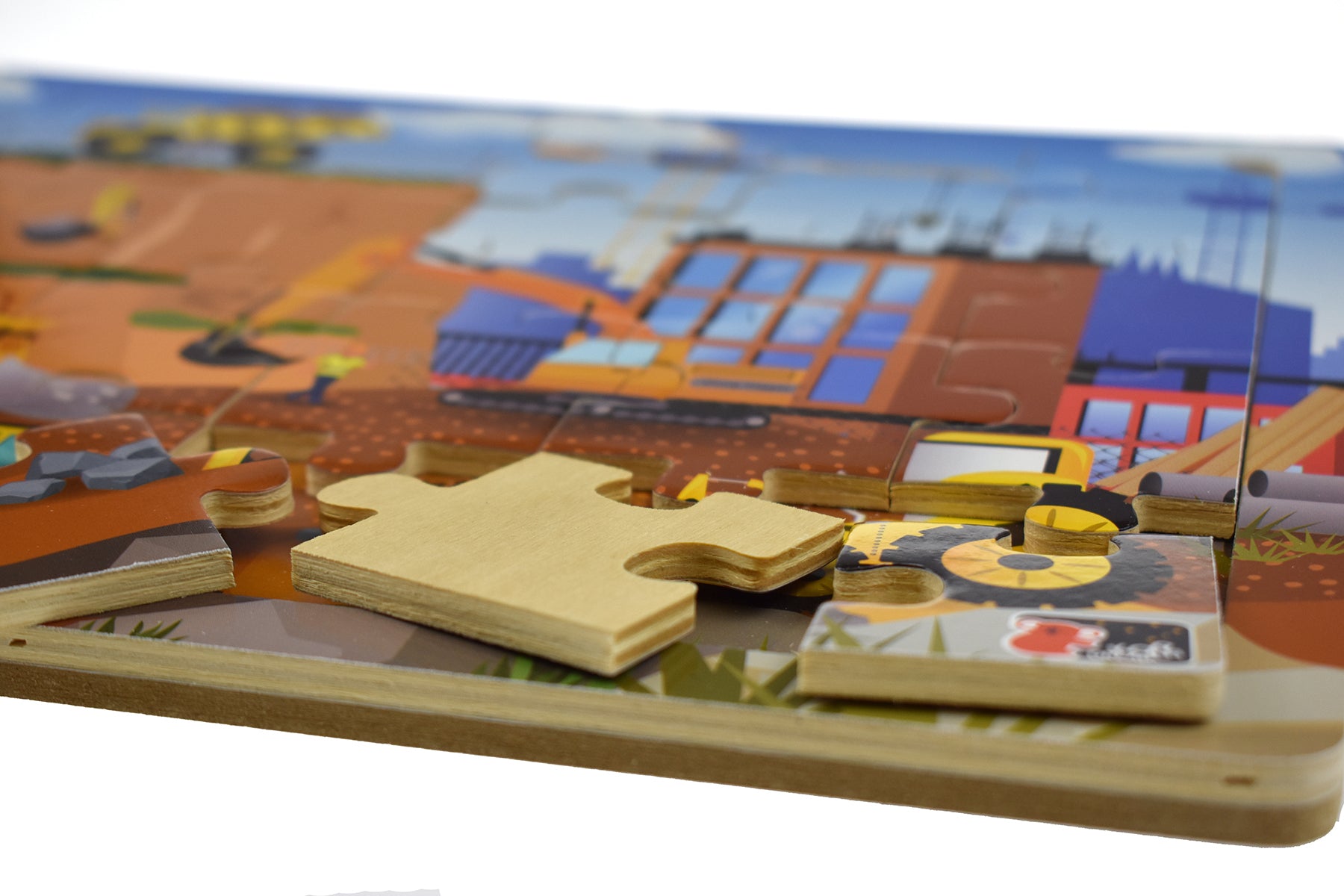Introducing the 24 Piece Puzzle Board Construction Site by Koala Dream, a thrilling puzzle adventure that takes you to a bustling construction site. As you assemble this 24-piece puzzle, you will uncover a world of heavy vehicles and trucks essential for making the construction project a reality. Prepare to encounter bulldozers, cranes, diggers, and more as you piece together the scene. This construction site puzzle provides an exciting and educational experience for young learners. Each puzzle piece represents a vital component of the construction site, allowing children to develop their problem-solving skills and hand-eye coordination as they fit the pieces together.