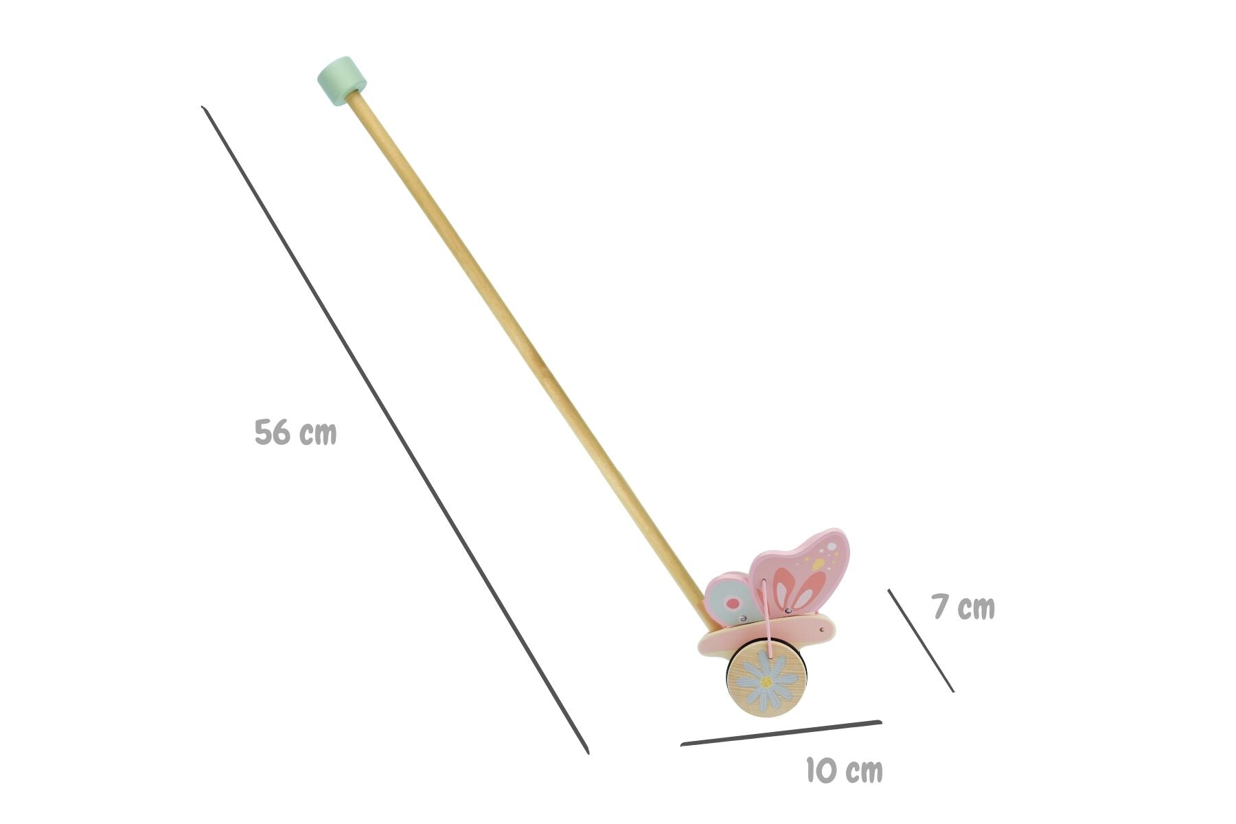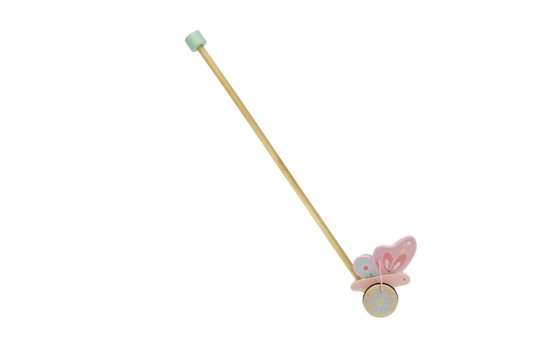 A delightful wooden bee or butterfly push-along toy that flap their wings as they move, perfect for encouraging walking and motor skills in children aged 12 months and up.