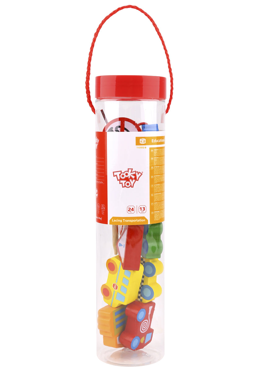 Each wooden Lacing Transportation Vehicle set from Tooky Toys is made from timber, finished to the highest quality and painted in child safe, non toxic paint.