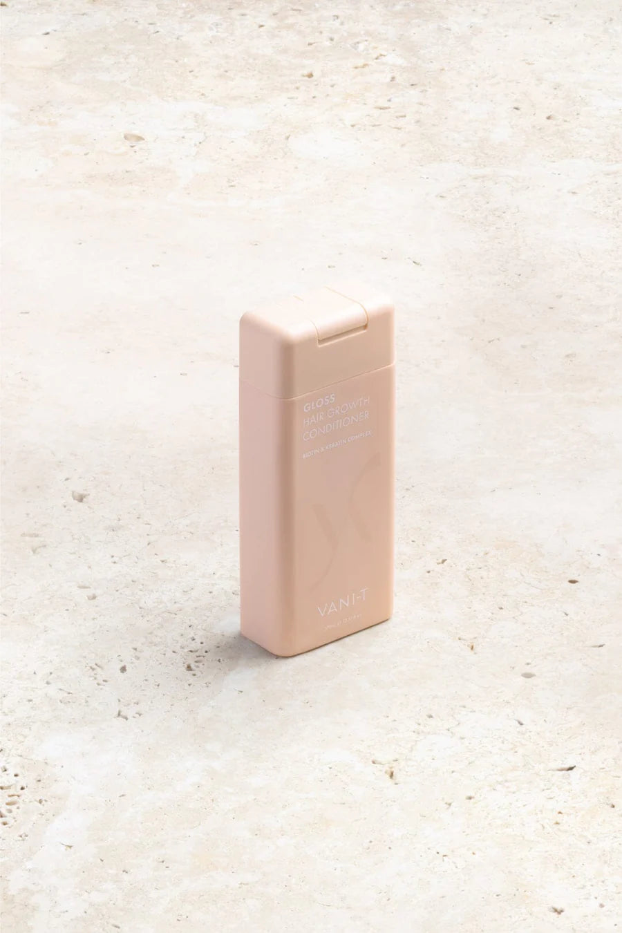 After washing hair with Gloss Hair Growth Shampoo, remove excess water from hair. Apply Gloss Hair Growth Conditioner, leave for a few minutes, then rinse well.