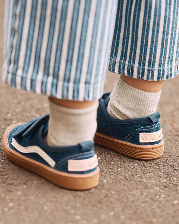 The Ben Canvas shoe is the perfect blend of style and comfort for your little one’s active days. Made from durable denim fabric, these sneakers are both lightweight and breathable. Featuring a fun two-tone design with a gum sole and a stylish side stripe, they offer a classic look with modern comfort. The easy-to-use double hook-and-loop straps make these shoes a breeze to put on and take off, while the flexible rubber sole provides great traction for running and playing. Ideal for everyday wear, the Ben Canvas sneakers keep your child comfy and ready for any adventure.