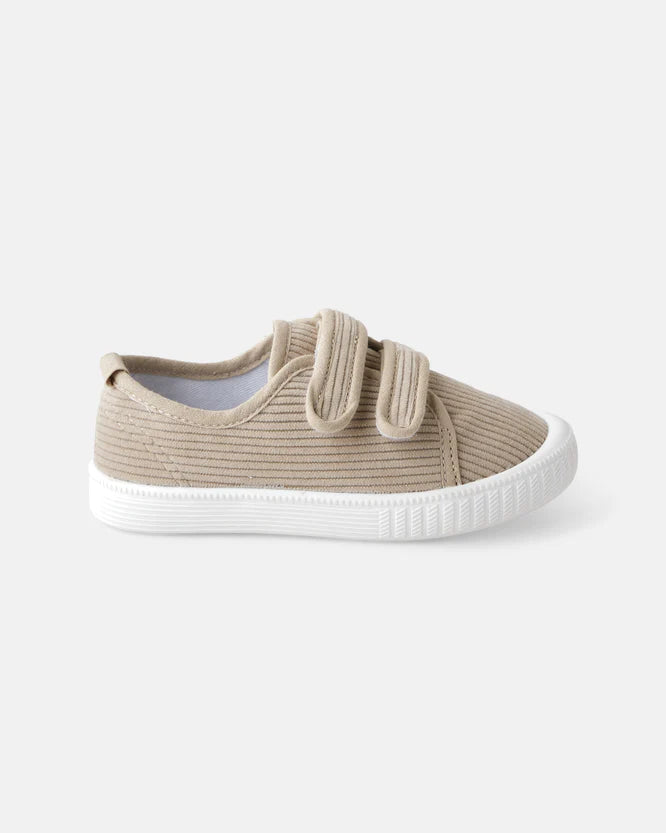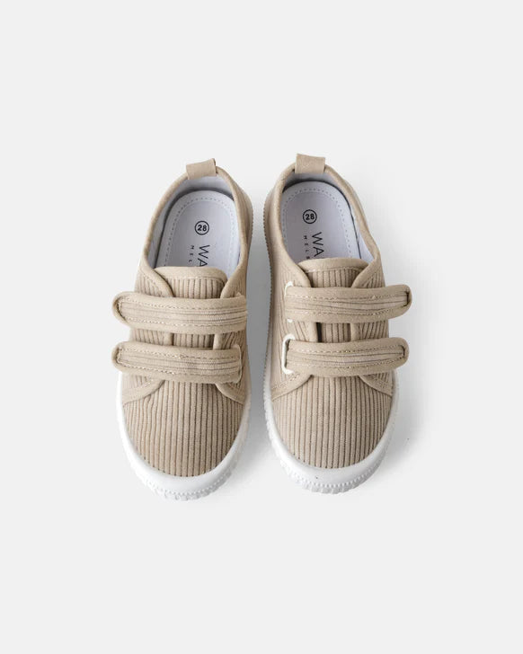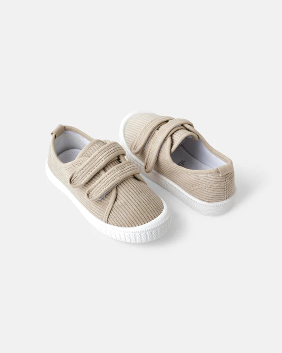 Our Classic Ben style are one of our bestselling canvas kids shoes. The double strap style features a durable rubber sole and an easy hook & eye straps for kids to get on and off themselves. In a super cool Sand colour, these shoes are perfect for school, kinder and play-dates in the park!