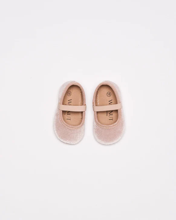 Delicate and oh-so-soft, the Mini Arlo Ballet Flat is the perfect first pair of shoes for your little one. Designed in a charming blush velvet, these tiny ballet flats feature an elastic strap to keep them securely on, while still being gentle on tiny feet. The soft sole and lightweight design make them ideal for pre-walkers, offering style and comfort for special occasions or everyday wear.